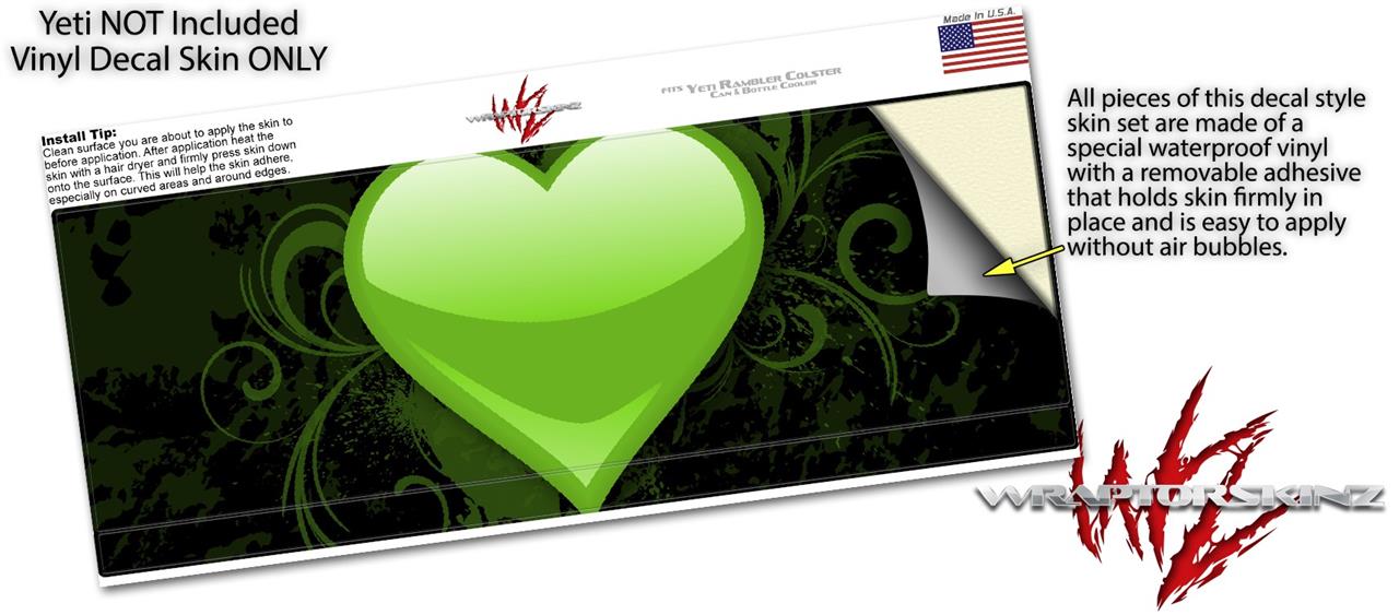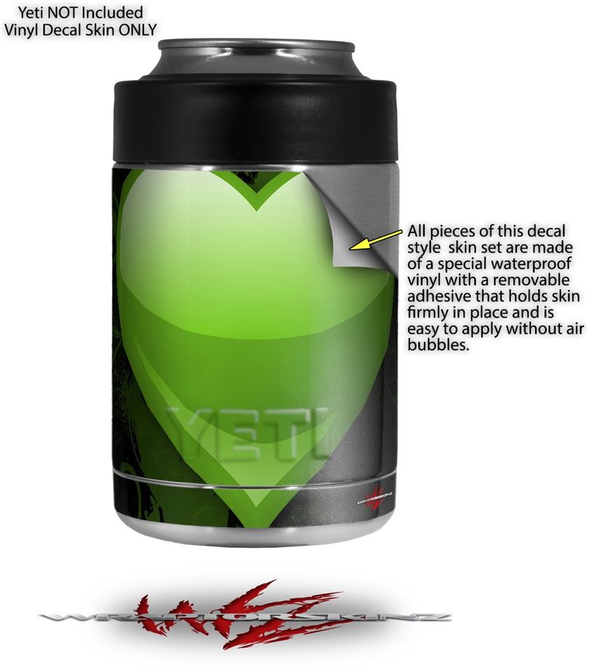 Skin Decal Wrap for Yeti Colster, Ozark Trail and RTIC Can Coolers - Glass Heart Grunge Green (COOLER NOT INCLUDED)