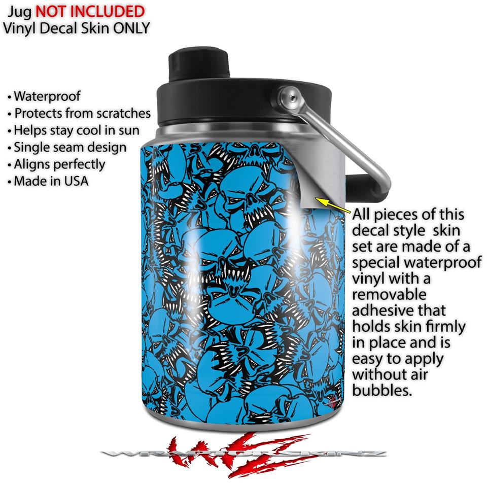 Skin Decal Wrap for Yeti Half Gallon Jug Scattered Skulls Neon Blue - JUG NOT INCLUDED by WraptorSkinz