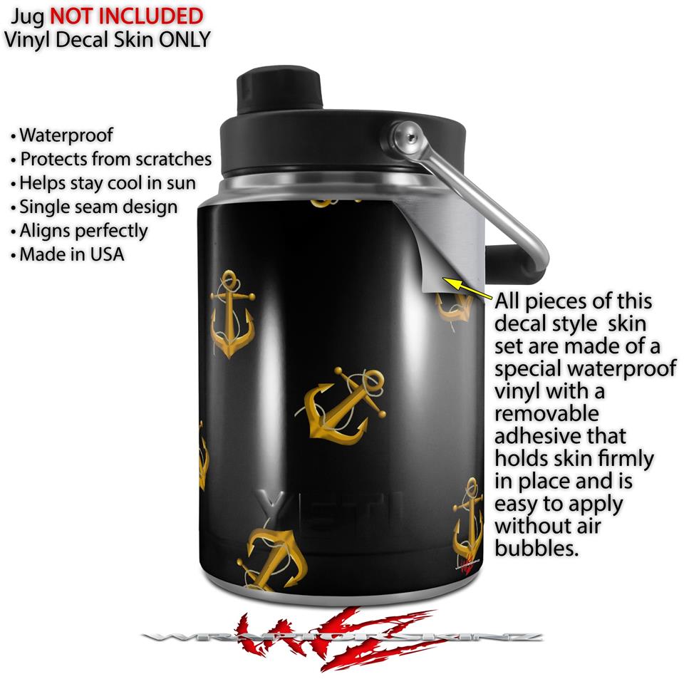 Skin Decal Wrap for Yeti Half Gallon Jug Anchors Away Black - JUG NOT INCLUDED by WraptorSkinz