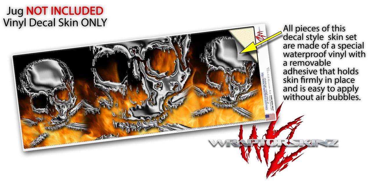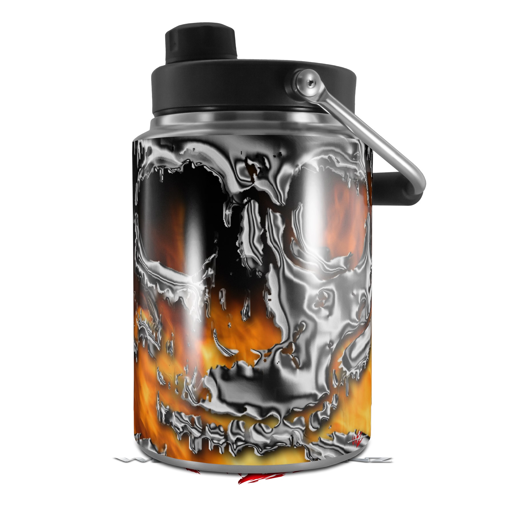 Skin Decal Wrap for Yeti Half Gallon Jug Chrome Skull on Fire - JUG NOT INCLUDED by WraptorSkinz