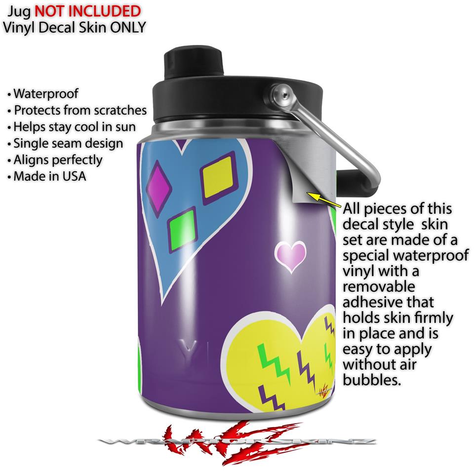 Skin Decal Wrap for Yeti Half Gallon Jug Crazy Hearts - JUG NOT INCLUDED by WraptorSkinz