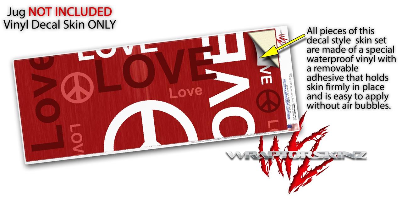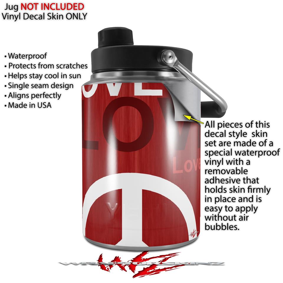 Skin Decal Wrap for Yeti Half Gallon Jug Love and Peace Red - JUG NOT INCLUDED by WraptorSkinz
