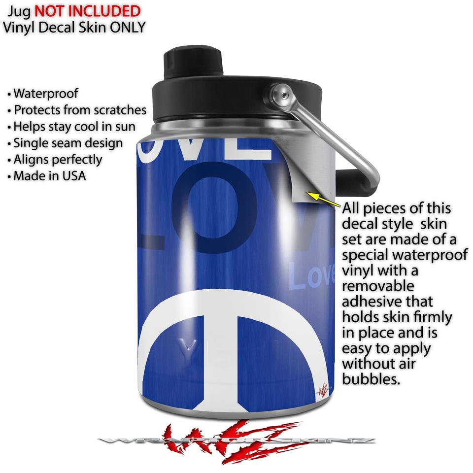 Skin Decal Wrap for Yeti Half Gallon Jug Love and Peace Blue - JUG NOT INCLUDED by WraptorSkinz