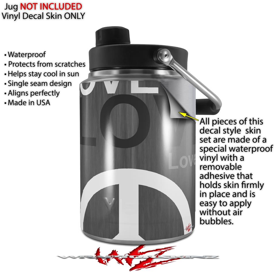 Skin Decal Wrap for Yeti Half Gallon Jug Love and Peace Gray - JUG NOT INCLUDED by WraptorSkinz