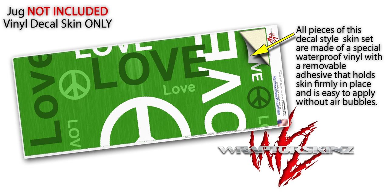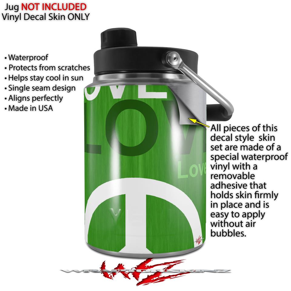 Skin Decal Wrap for Yeti Half Gallon Jug Love and Peace Green - JUG NOT INCLUDED by WraptorSkinz