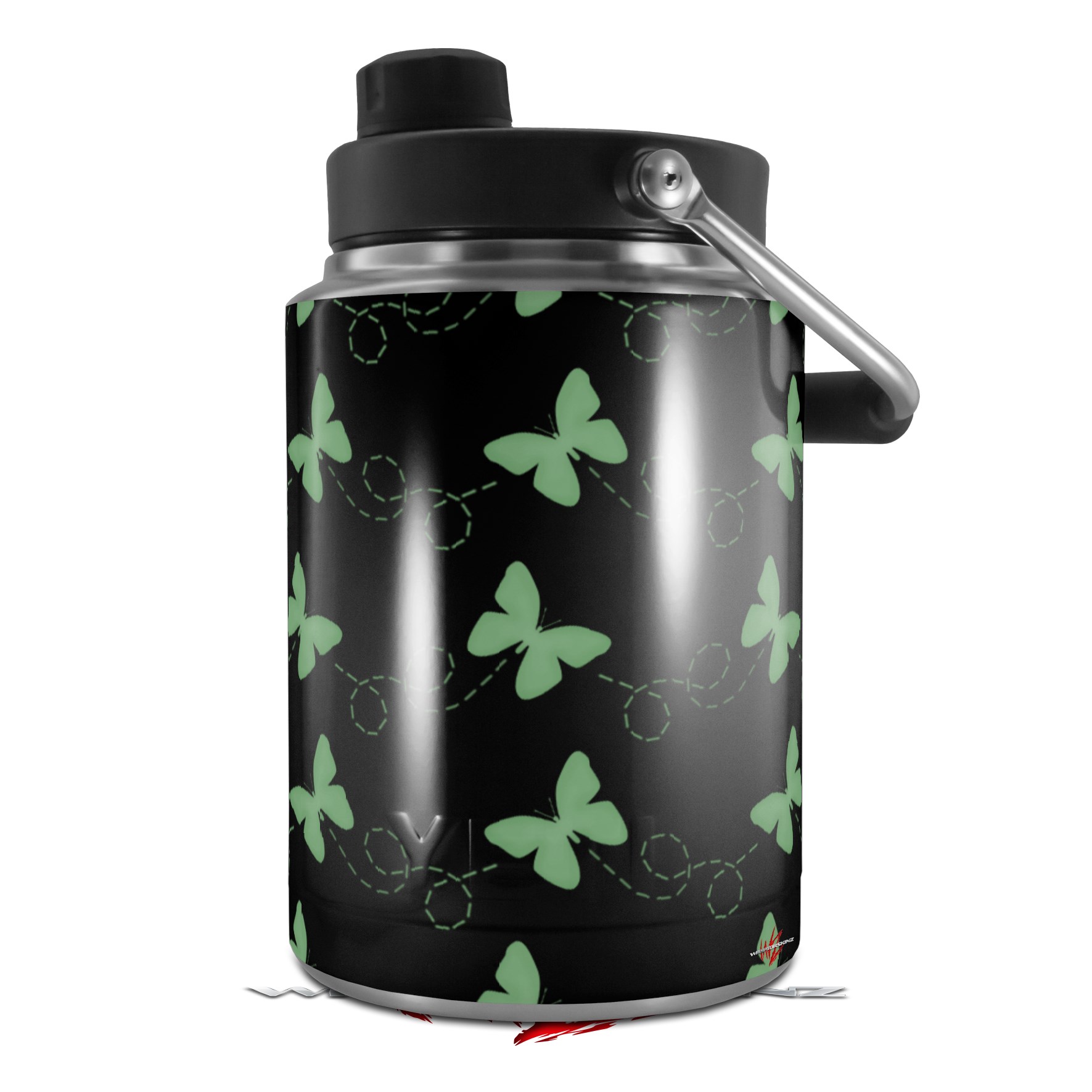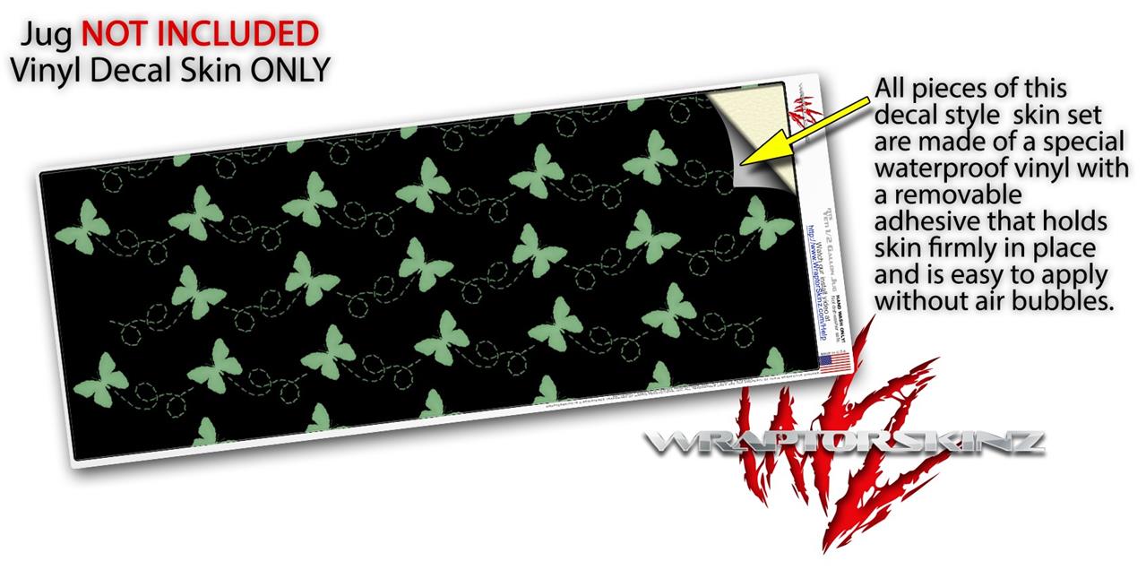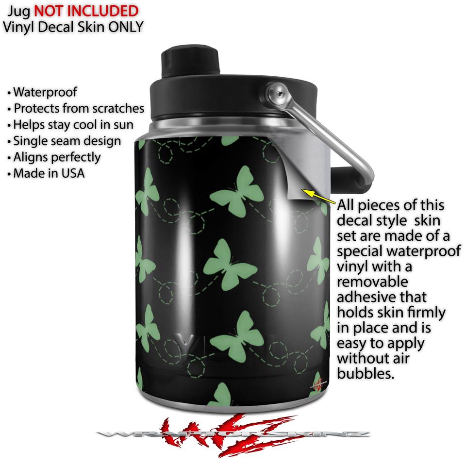 Skin Decal Wrap for Yeti Half Gallon Jug Pastel Butterflies Green on Black - JUG NOT INCLUDED by WraptorSkinz