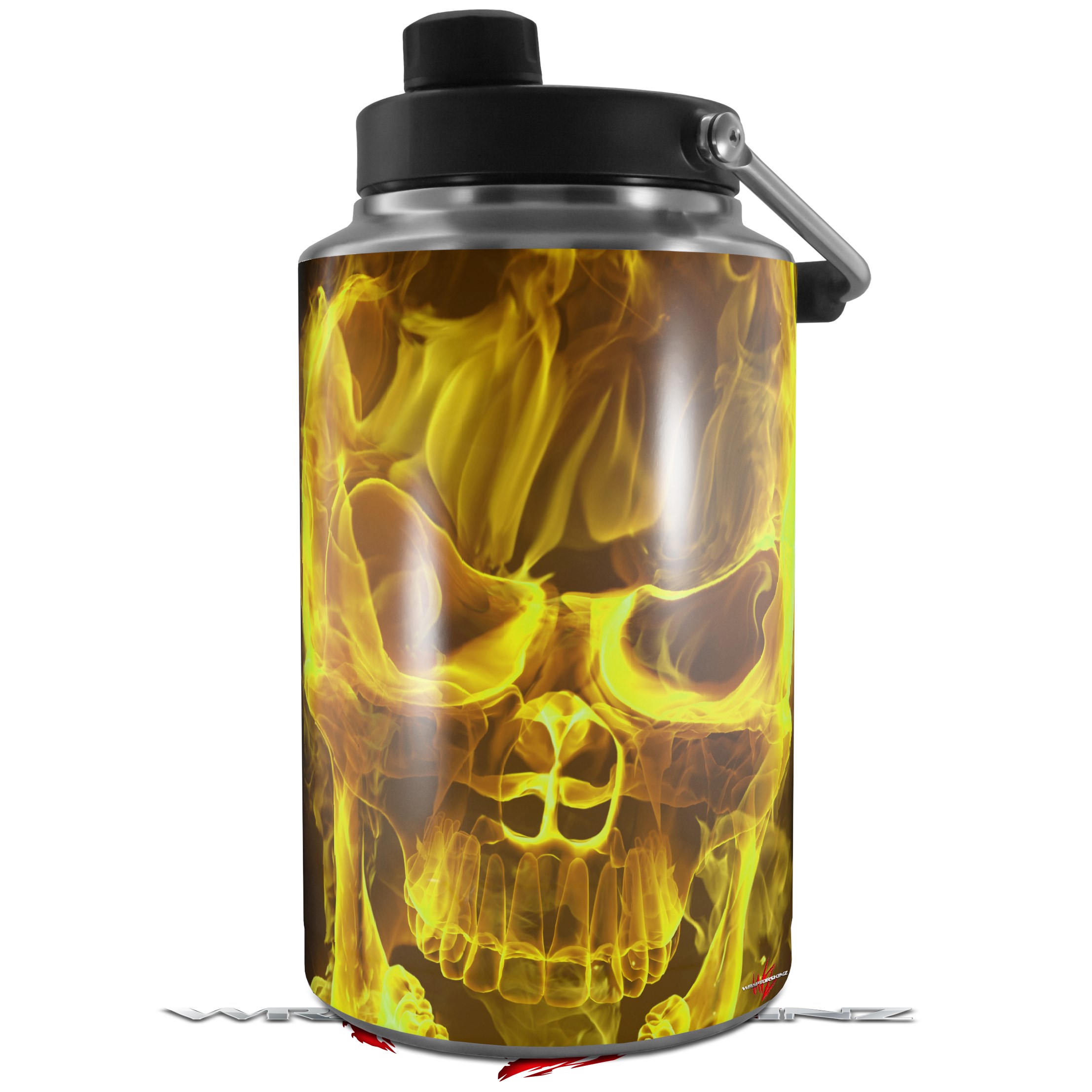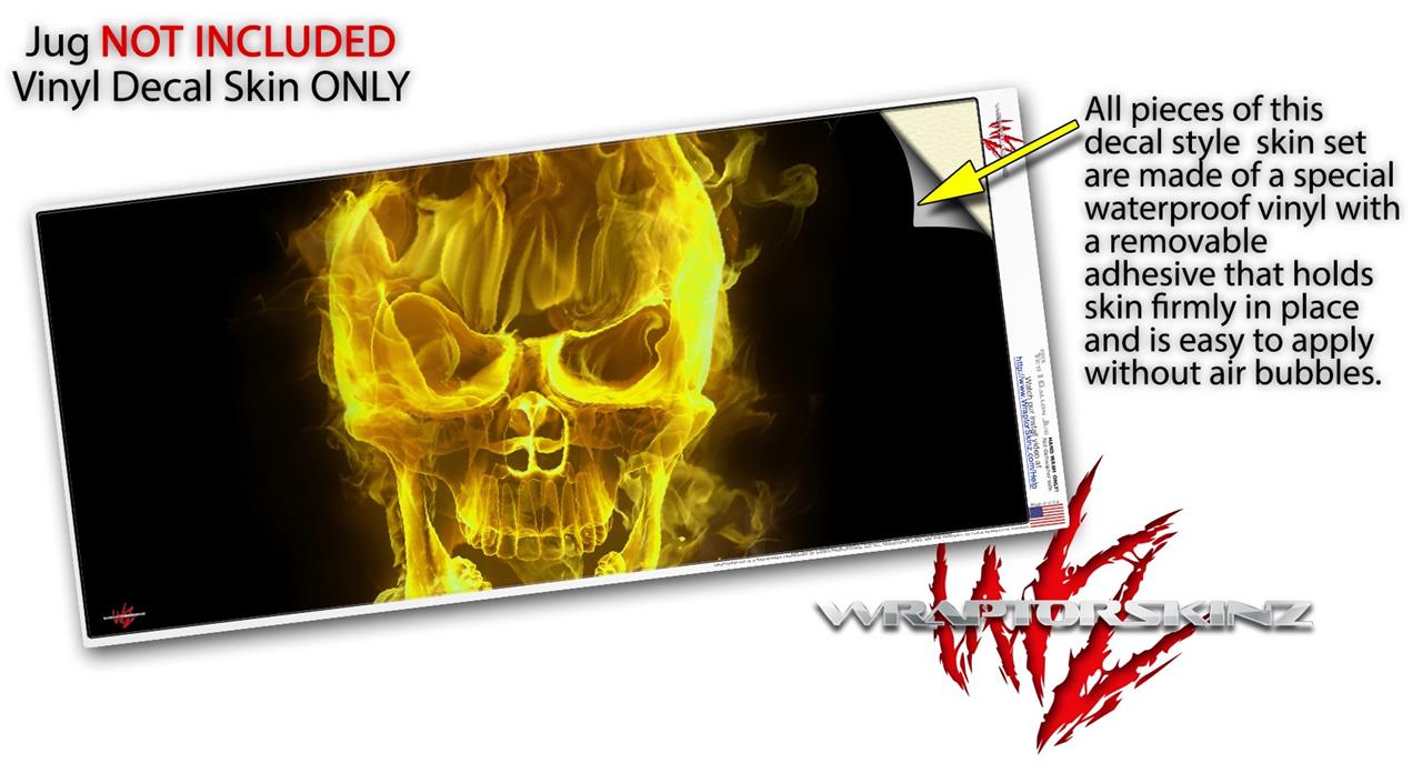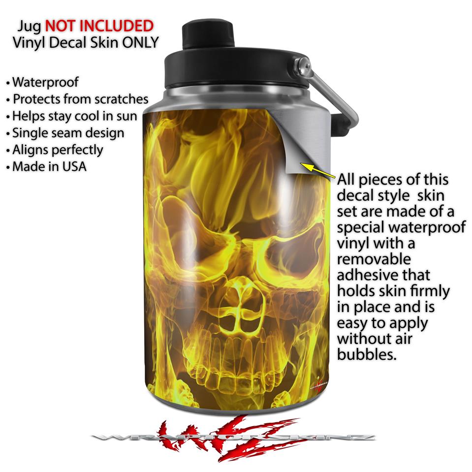 Skin Decal Wrap for Yeti 1 Gallon Jug Flaming Fire Skull Yellow - JUG NOT INCLUDED by WraptorSkinz