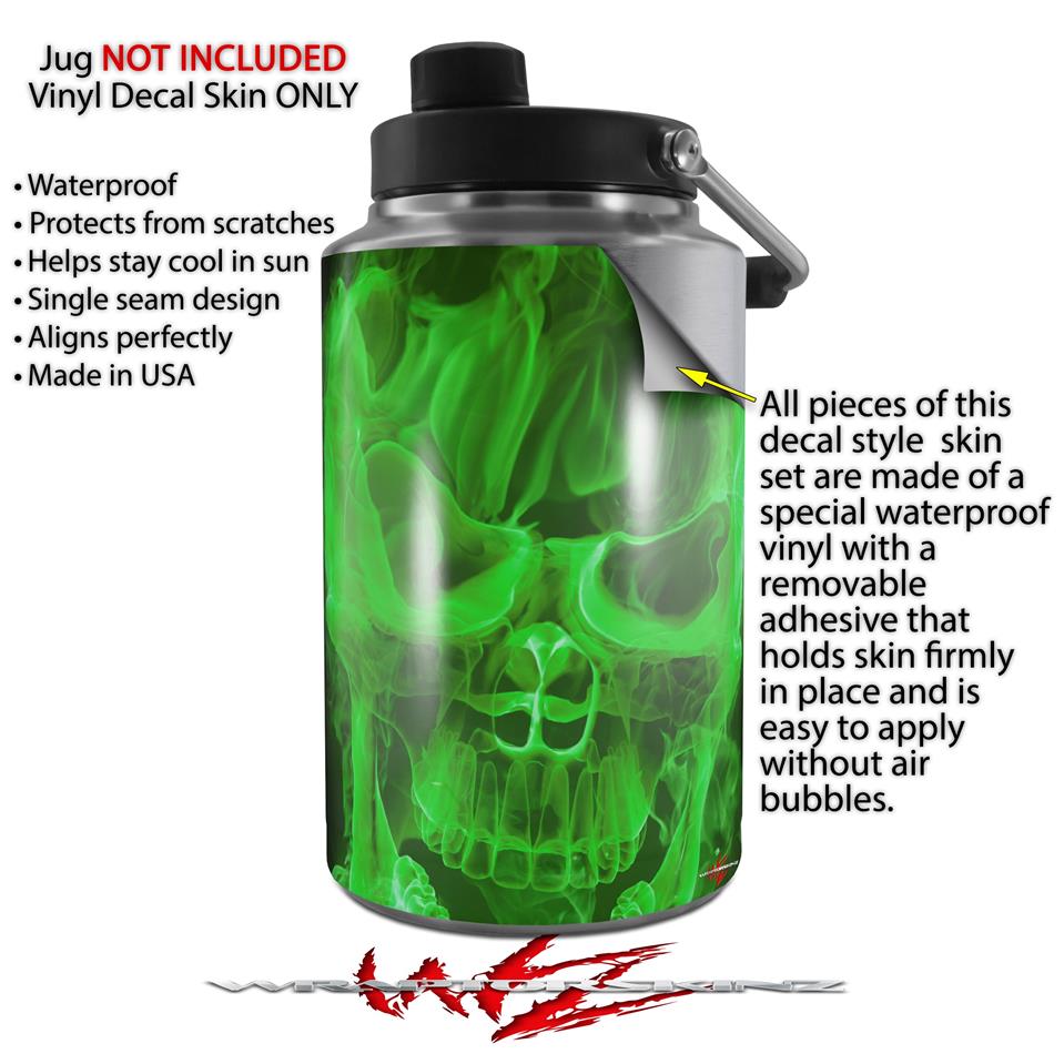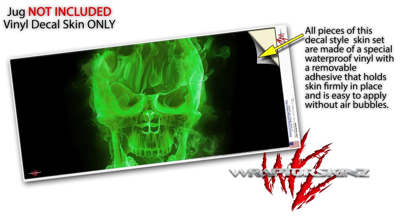 Skin Decal Wrap for Yeti 1 Gallon Jug Flaming Fire Skull Green - JUG NOT INCLUDED by WraptorSkinz