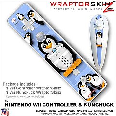 Wii Remote Controller (wiiMote) Skins Penguins On Blue - WraptorSkinz by TuneTattooz