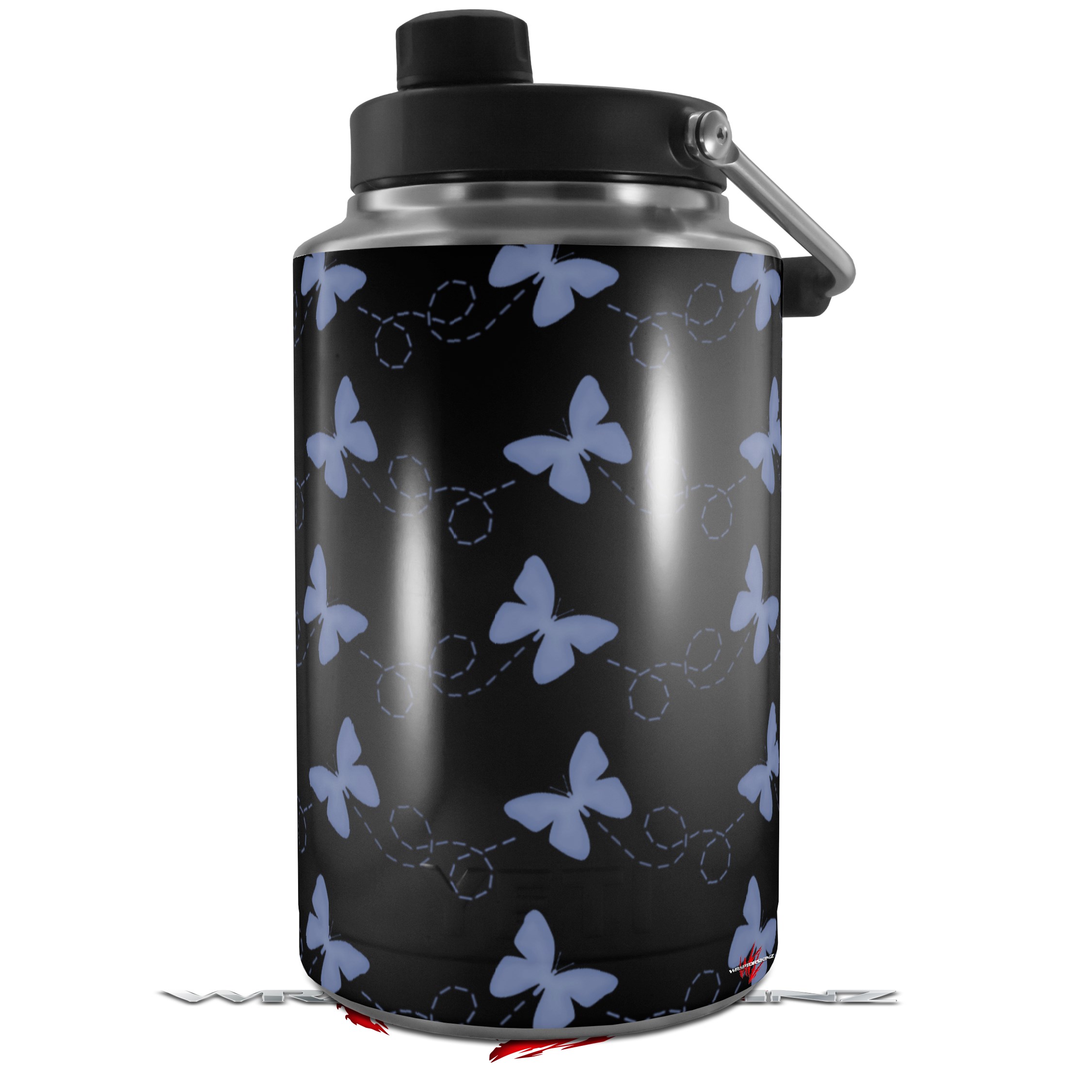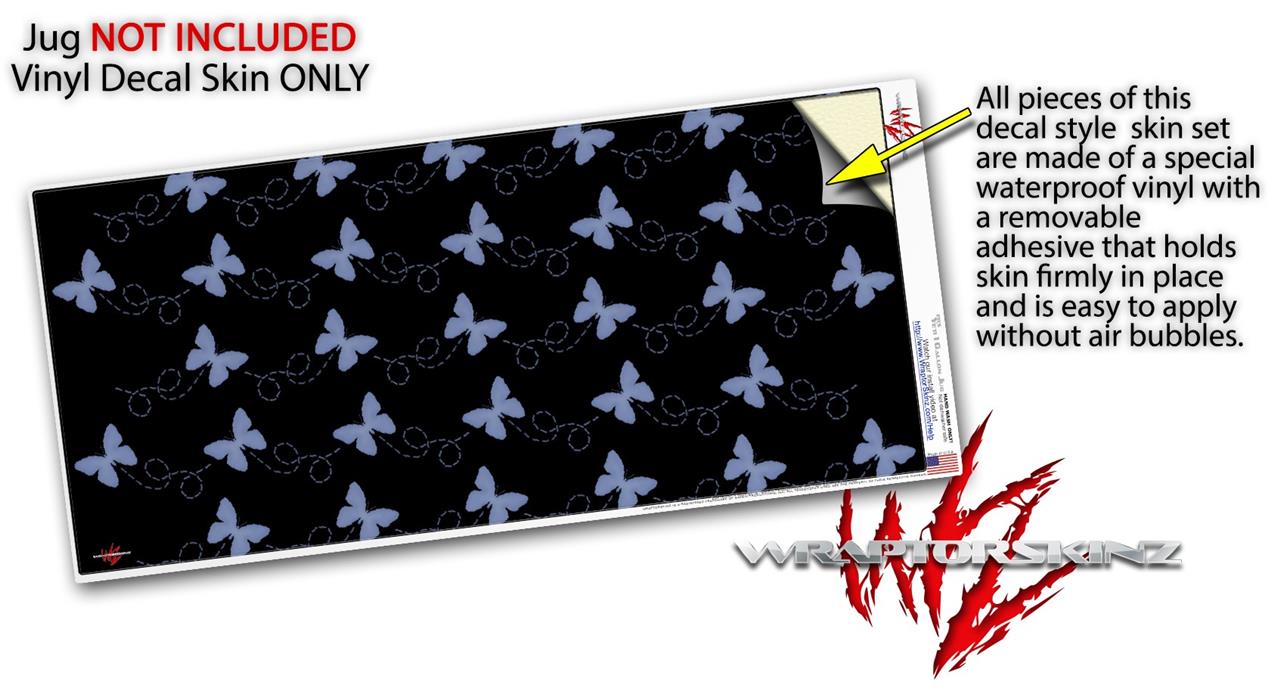 Skin Decal Wrap for Yeti 1 Gallon Jug Pastel Butterflies Blue on Black - JUG NOT INCLUDED by WraptorSkinz