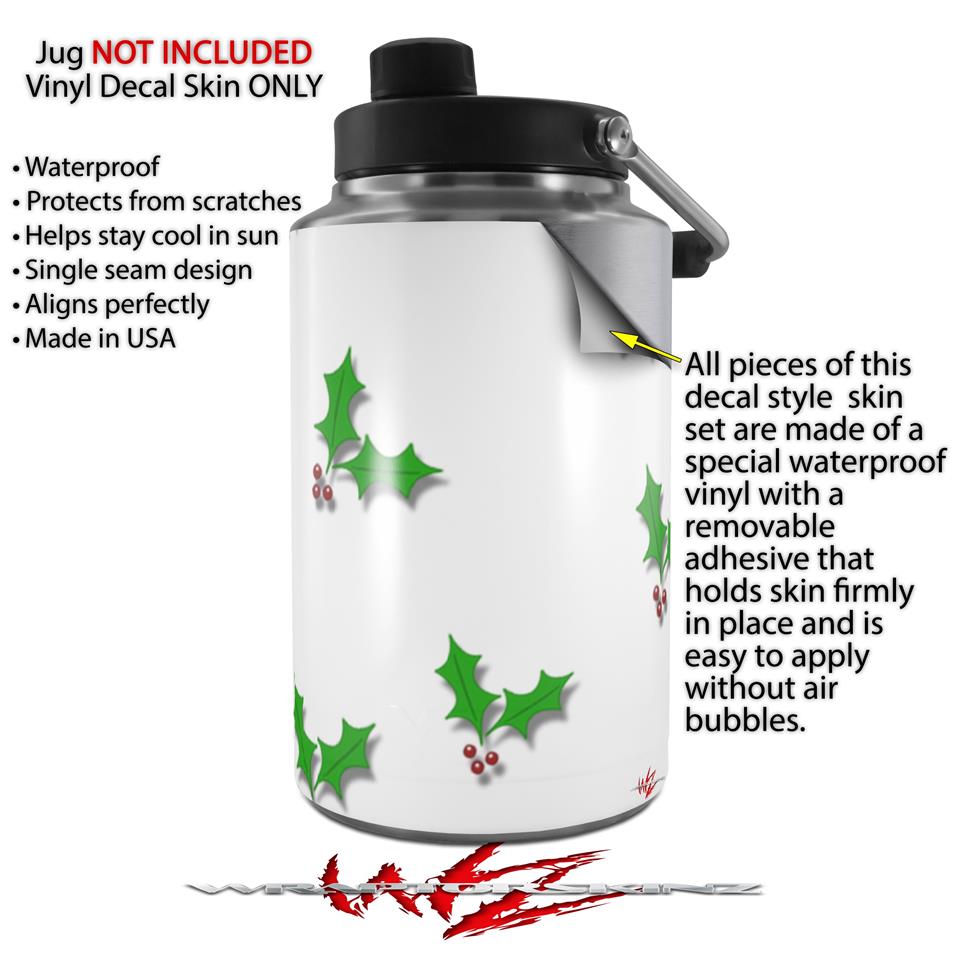 Skin Decal Wrap for Yeti 1 Gallon Jug Christmas Holly Leaves on White - JUG NOT INCLUDED by WraptorSkinz