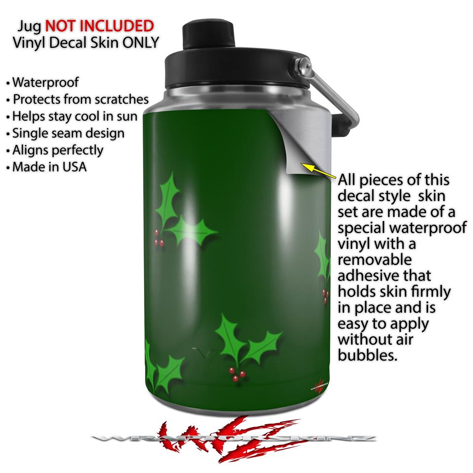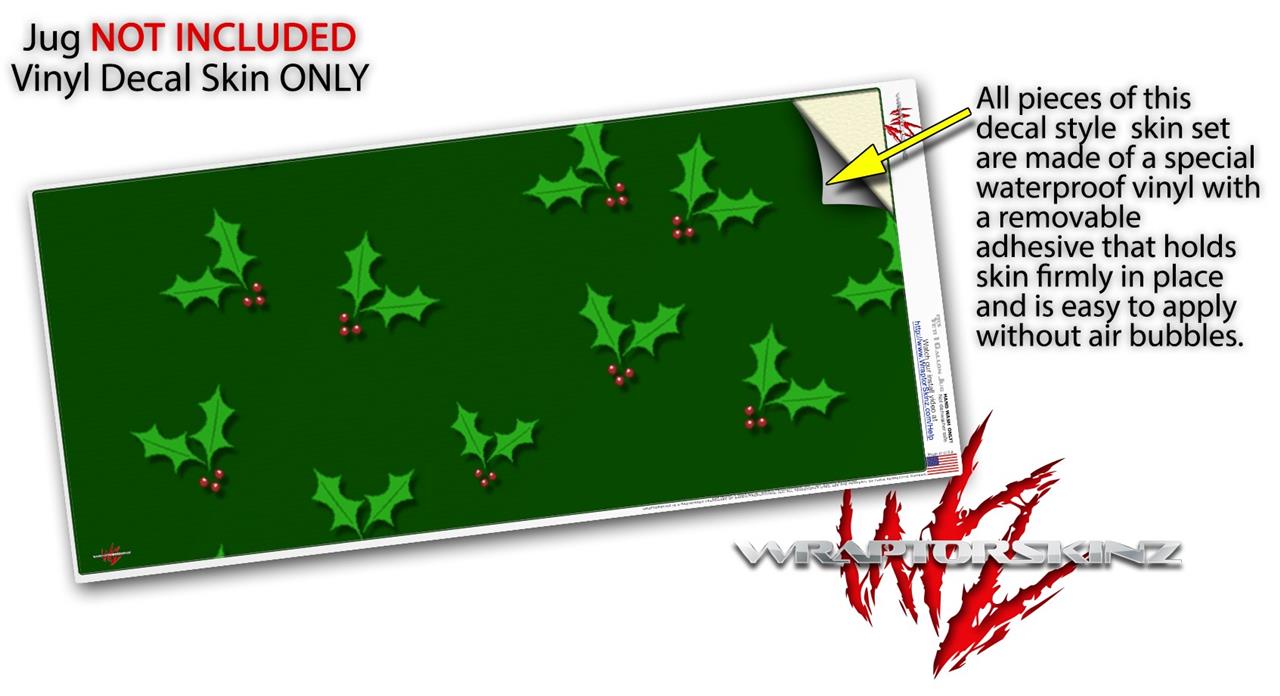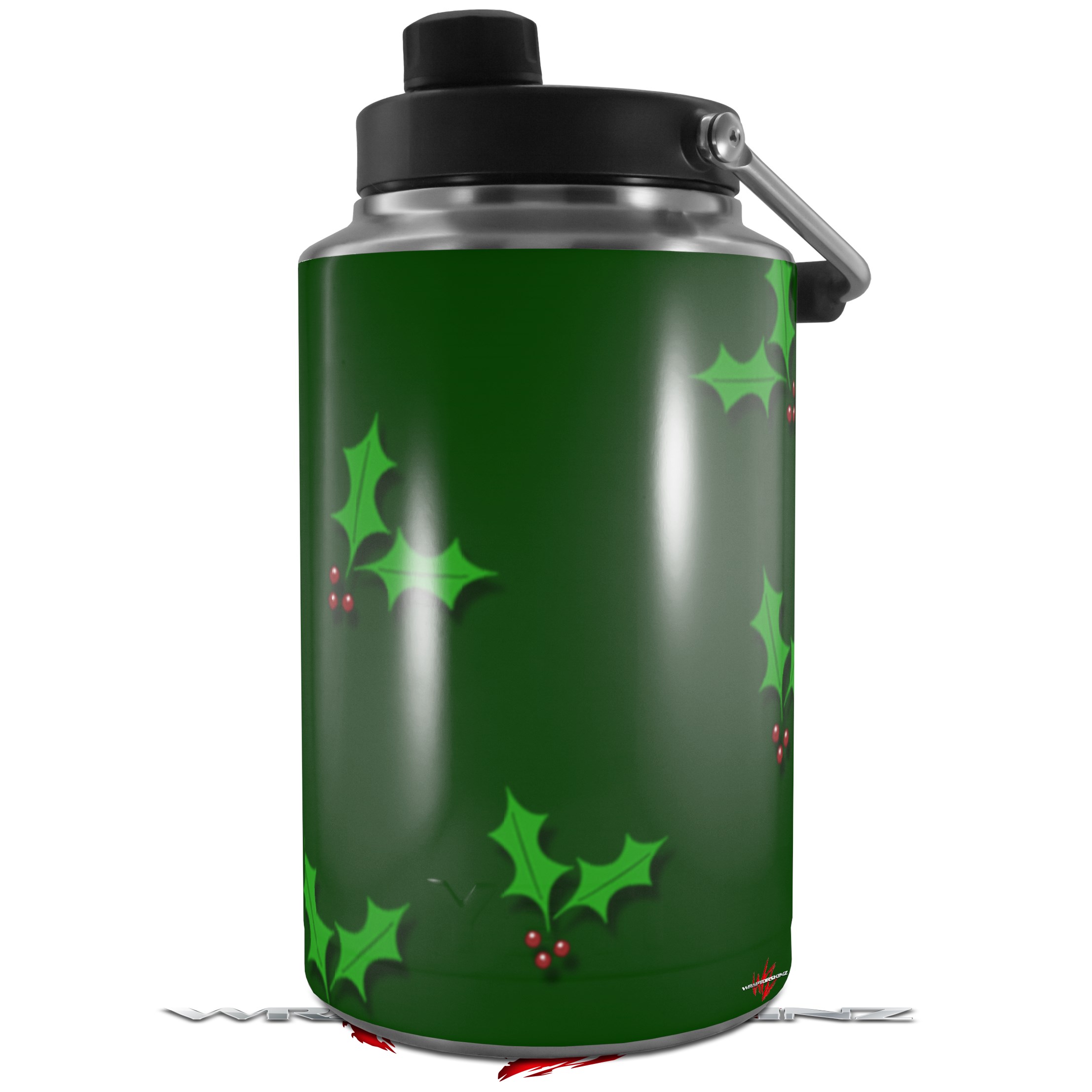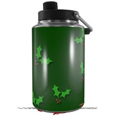 Skin Decal Wrap for Yeti 1 Gallon Jug Christmas Holly Leaves on Green - JUG NOT INCLUDED by WraptorSkinz