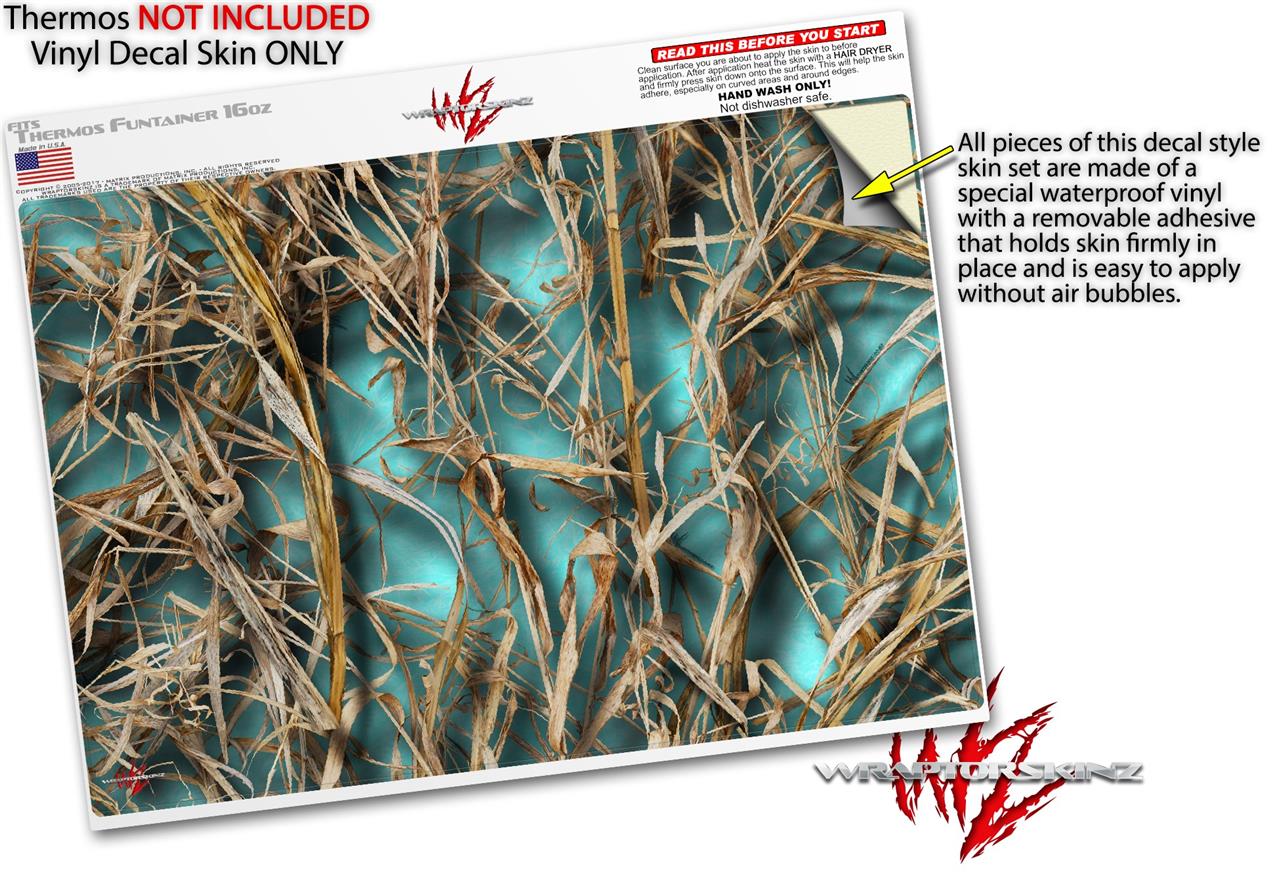 Skin Decal Wrap for Thermos Funtainer 16oz Bottle WraptorCamo Grassy Marsh Camo Neon Teal (BOTTLE NOT INCLUDED) by WraptorSkinz