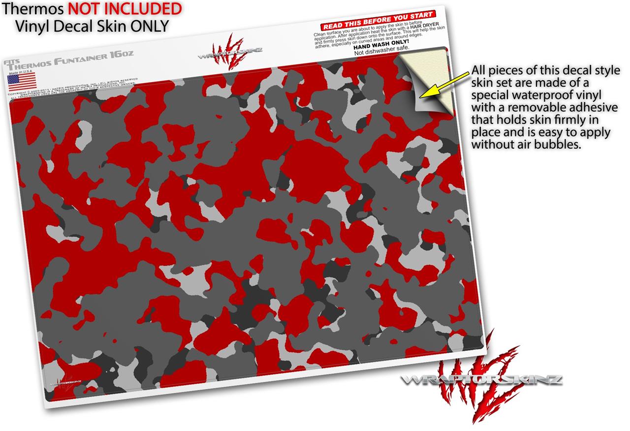 Skin Decal Wrap for Thermos Funtainer 16oz Bottle WraptorCamo Old School Camouflage Camo Red (BOTTLE NOT INCLUDED) by WraptorSkinz