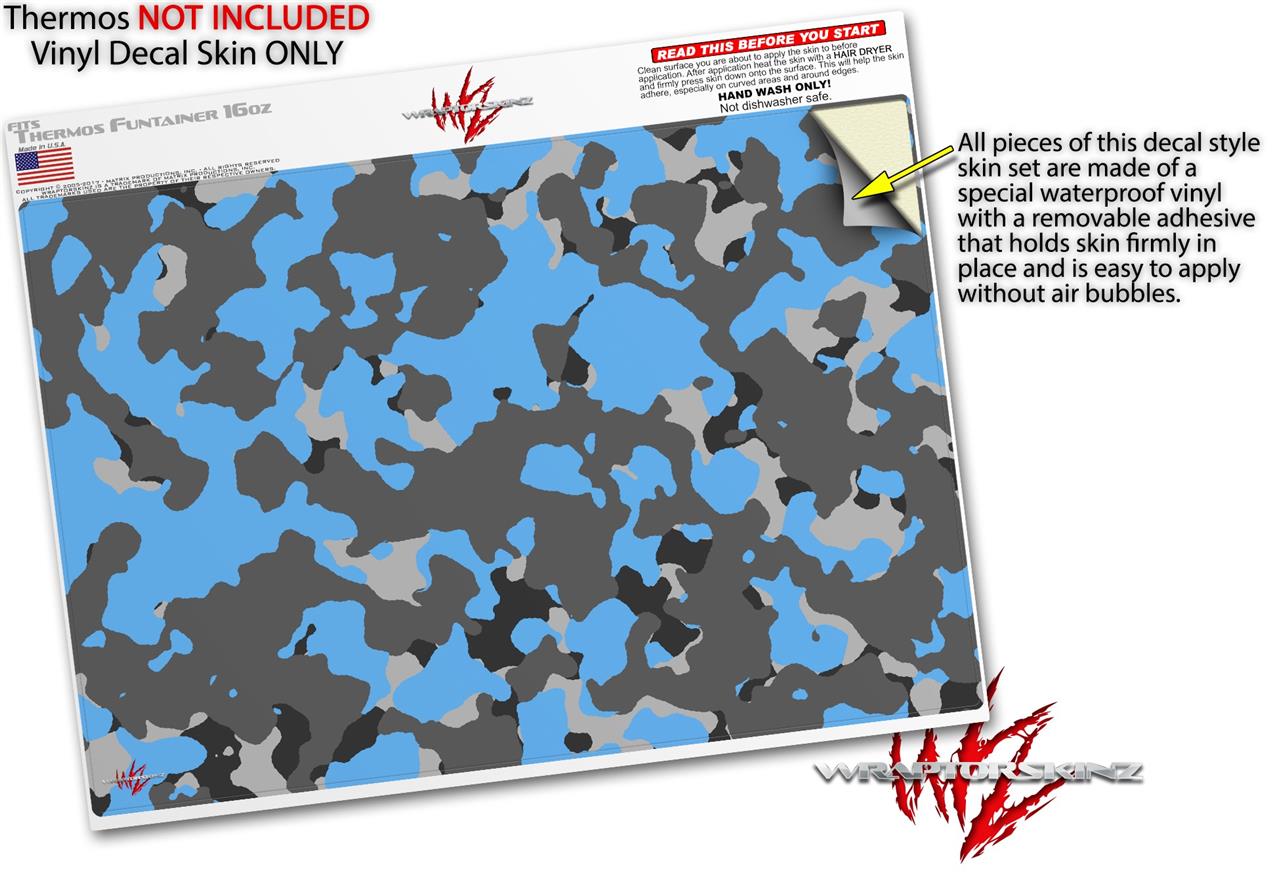 Skin Decal Wrap for Thermos Funtainer 16oz Bottle WraptorCamo Old School Camouflage Camo Blue Medium (BOTTLE NOT INCLUDED) by WraptorSkinz