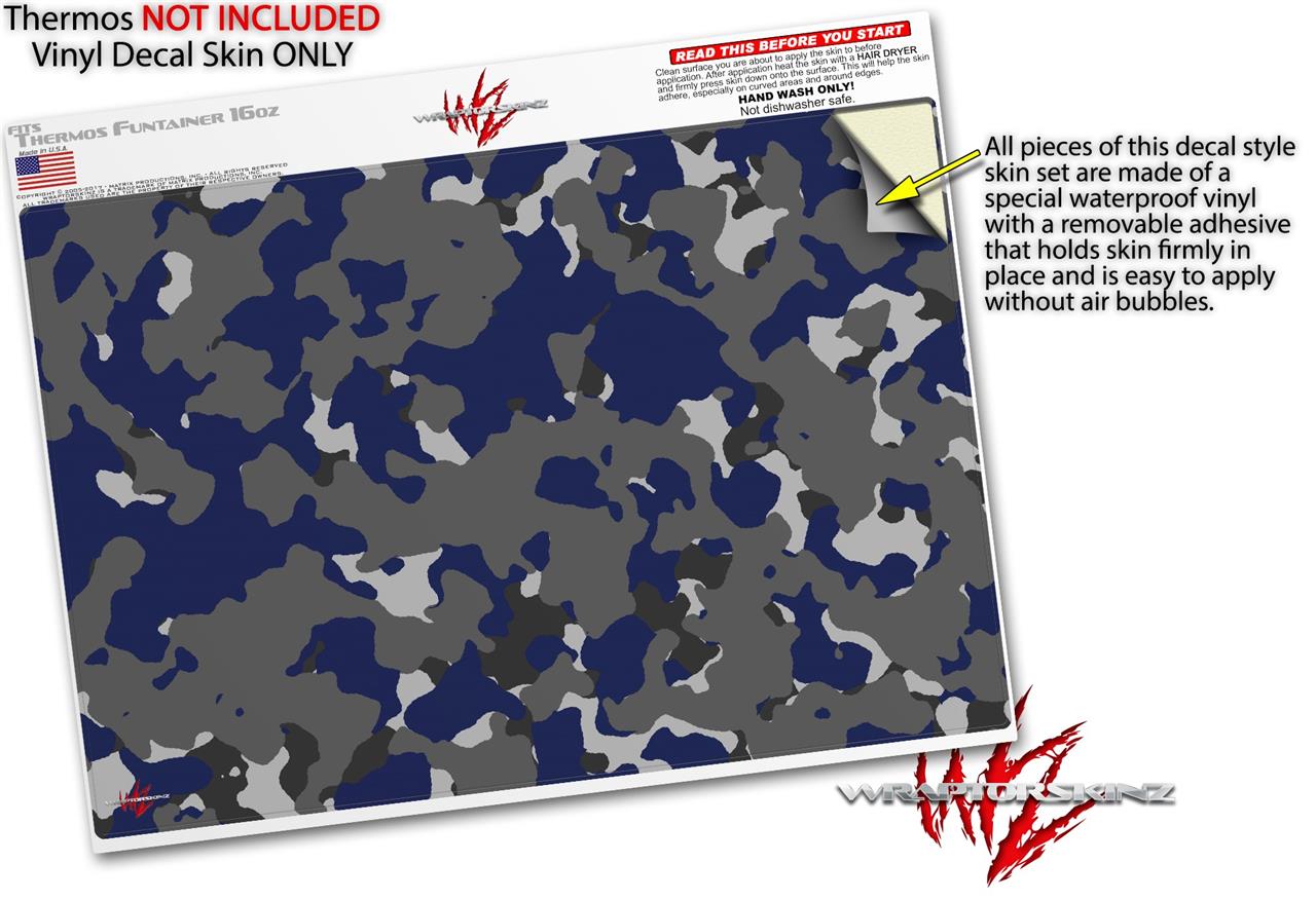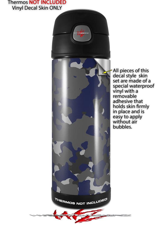 Skin Decal Wrap for Thermos Funtainer 16oz Bottle WraptorCamo Old School Camouflage Camo Blue Navy (BOTTLE NOT INCLUDED) by WraptorSkinz