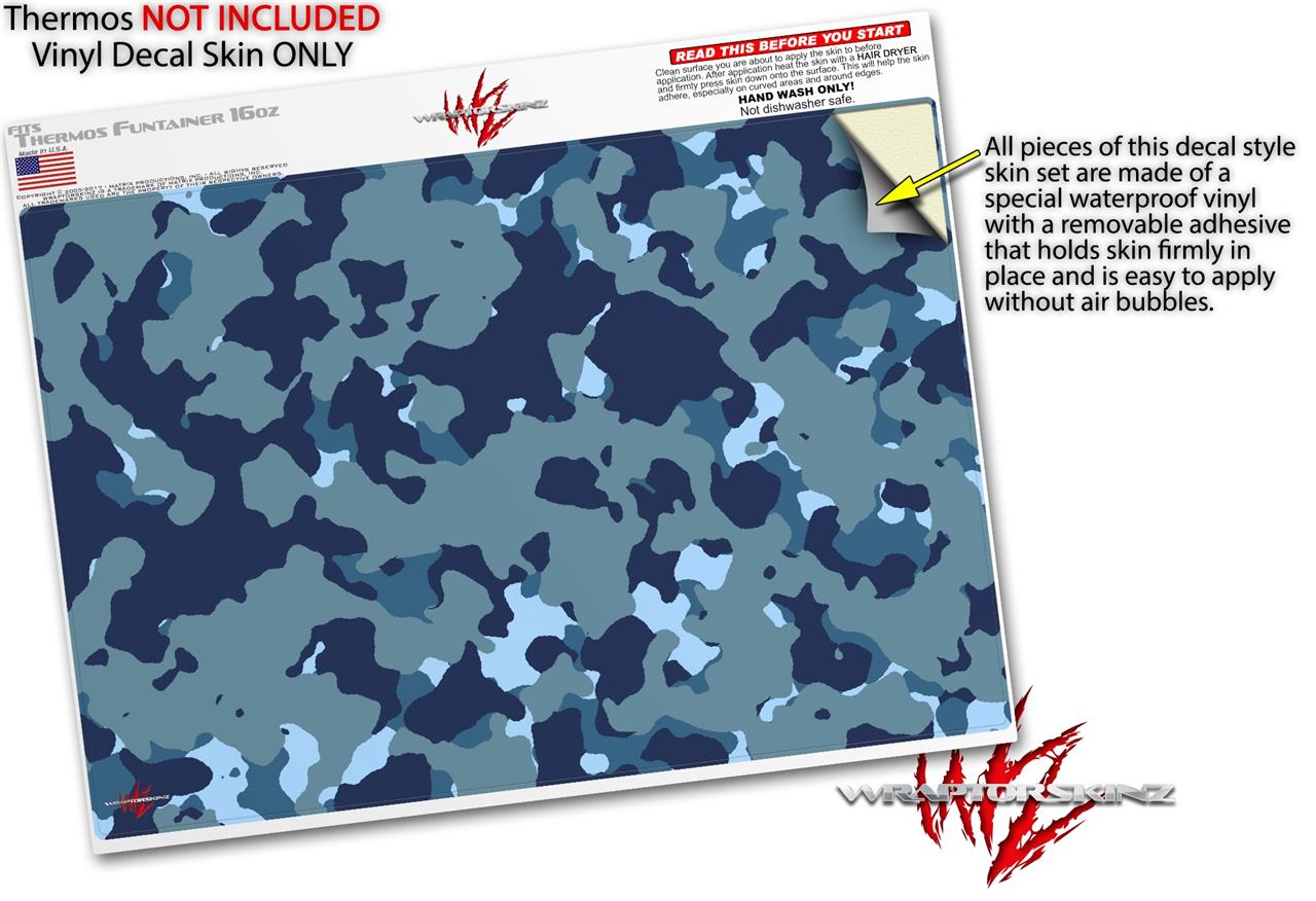 Skin Decal Wrap for Thermos Funtainer 16oz Bottle WraptorCamo Old School Camouflage Camo Navy (BOTTLE NOT INCLUDED) by WraptorSkinz