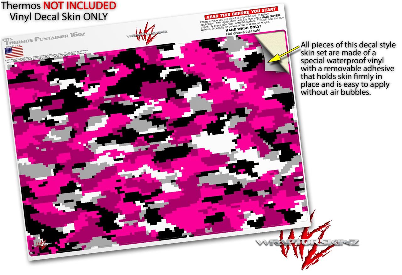 Skin Decal Wrap for Thermos Funtainer 16oz Bottle WraptorCamo Digital Camo Hot Pink (BOTTLE NOT INCLUDED) by WraptorSkinz