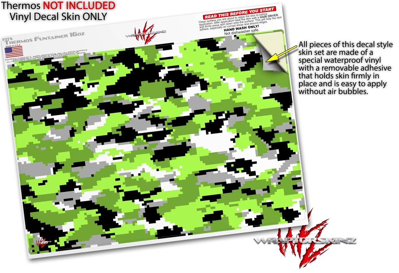 Skin Decal Wrap for Thermos Funtainer 16oz Bottle WraptorCamo Digital Camo Neon Green (BOTTLE NOT INCLUDED) by WraptorSkinz