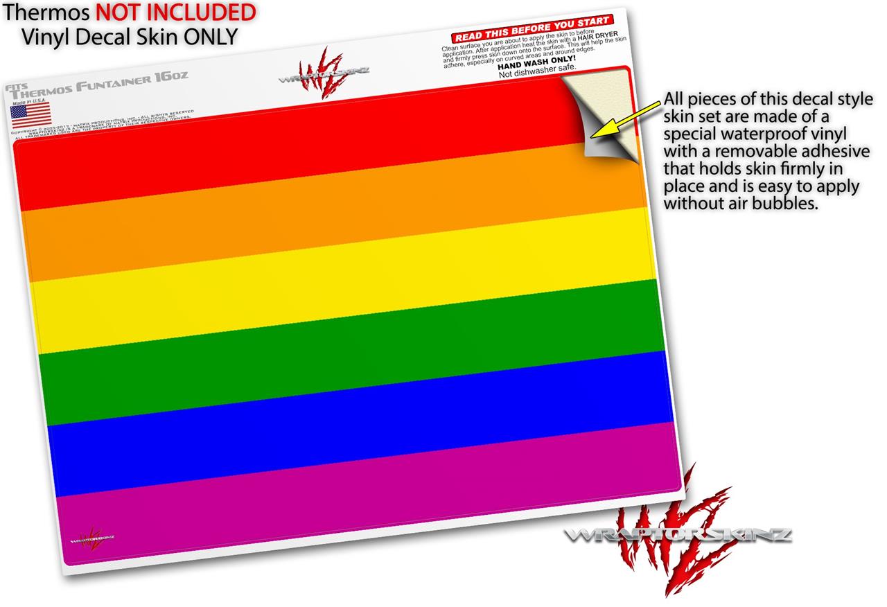 Skin Decal Wrap for Thermos Funtainer 16oz Bottle Rainbow Stripes (BOTTLE NOT INCLUDED) by WraptorSkinz