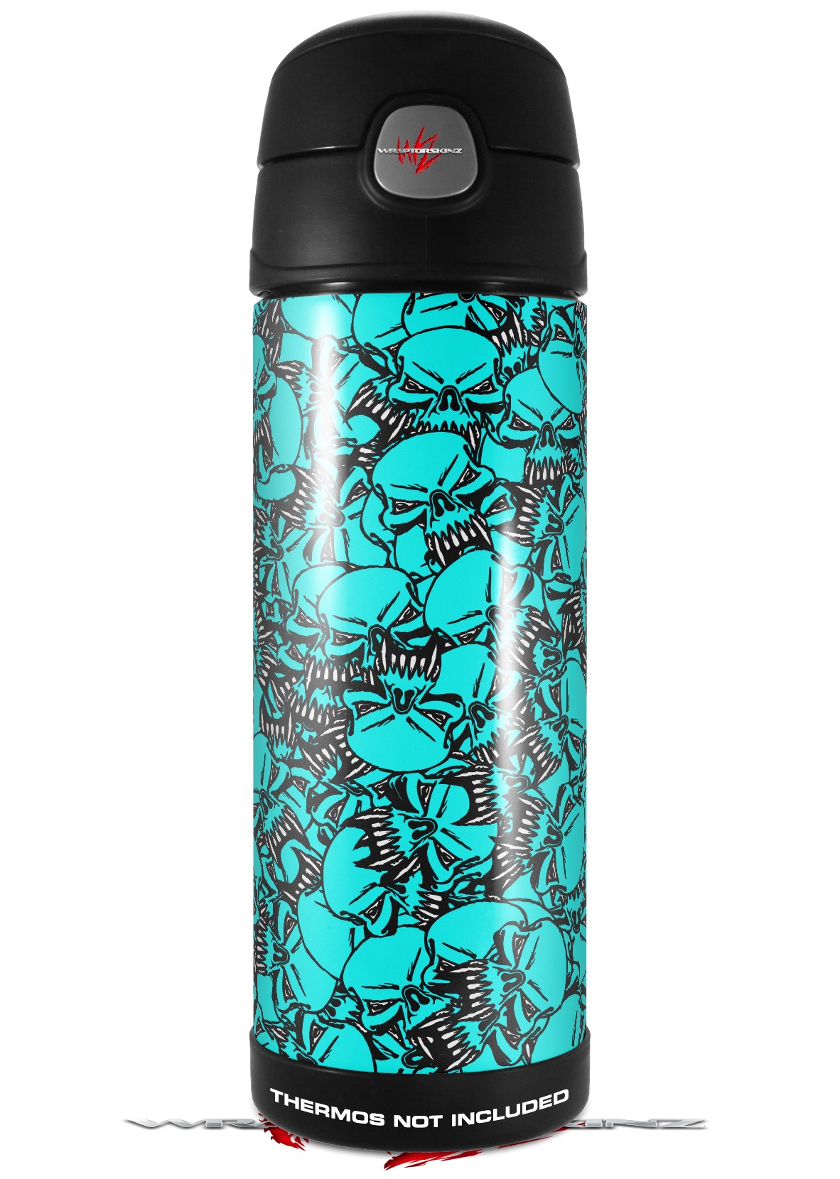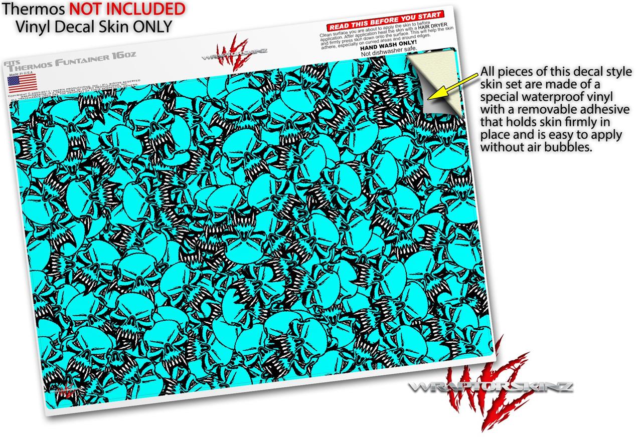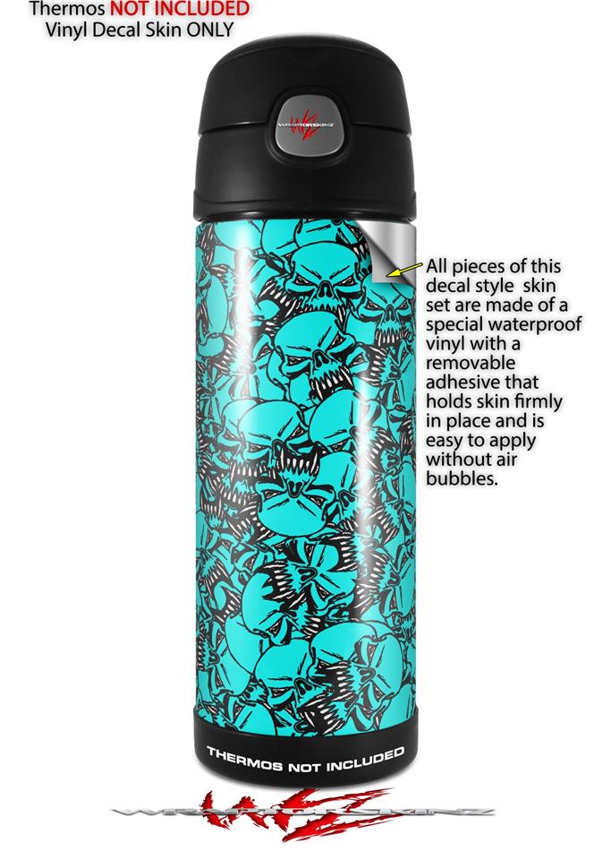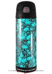 Skin Decal Wrap for Thermos Funtainer 16oz Bottle Scattered Skulls Neon Teal (BOTTLE NOT INCLUDED) by WraptorSkinz