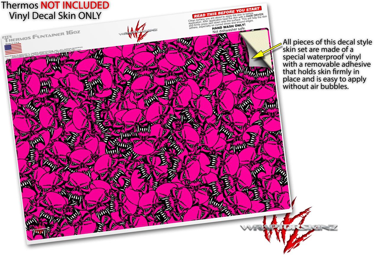 Skin Decal Wrap for Thermos Funtainer 16oz Bottle Scattered Skulls Hot Pink (BOTTLE NOT INCLUDED) by WraptorSkinz
