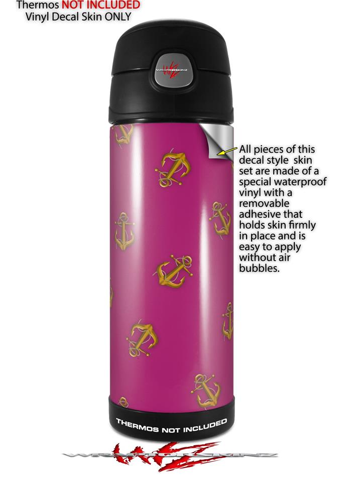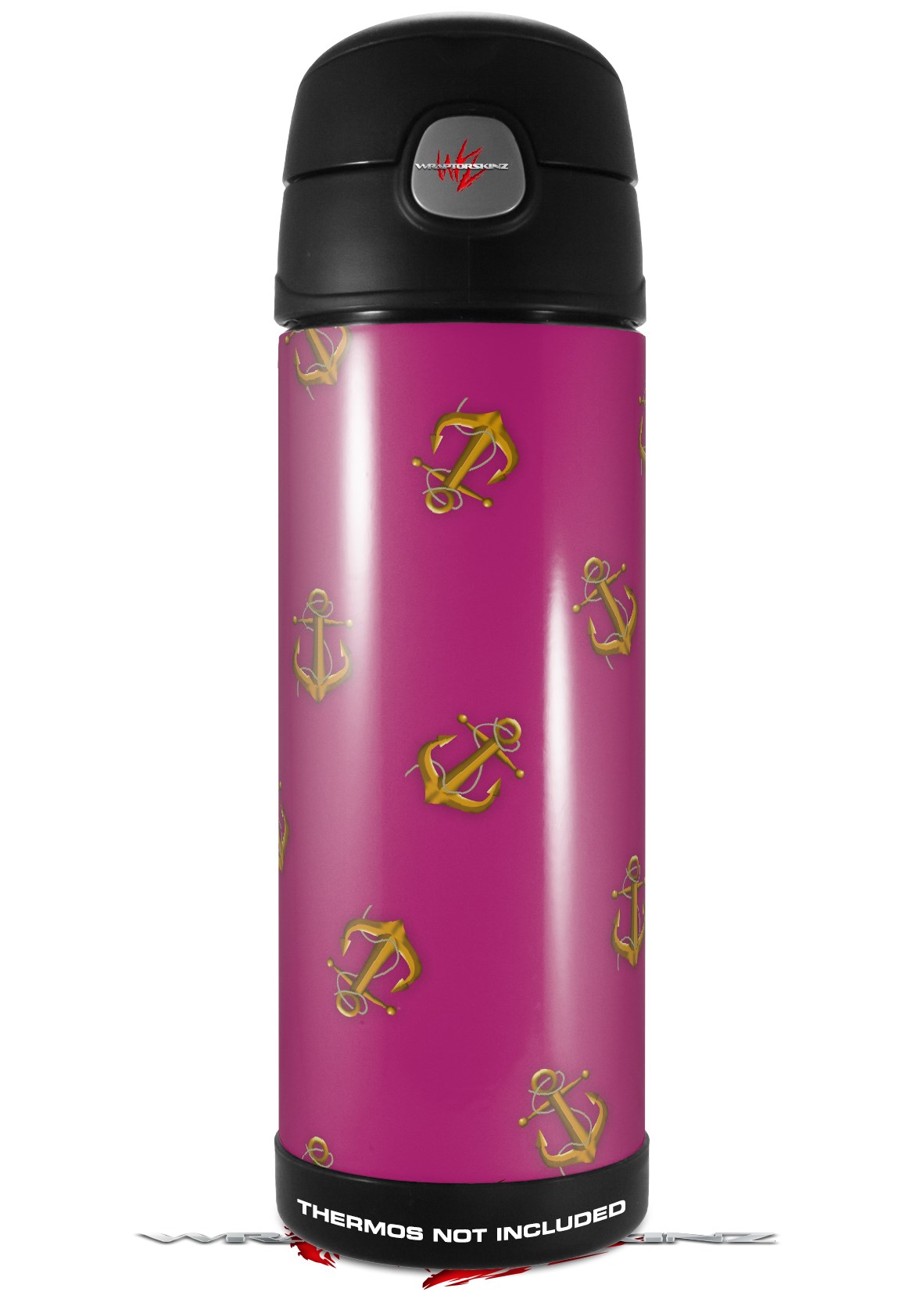 Skin Decal Wrap for Thermos Funtainer 16oz Bottle Anchors Away Fuschia Hot Pink (BOTTLE NOT INCLUDED) by WraptorSkinz