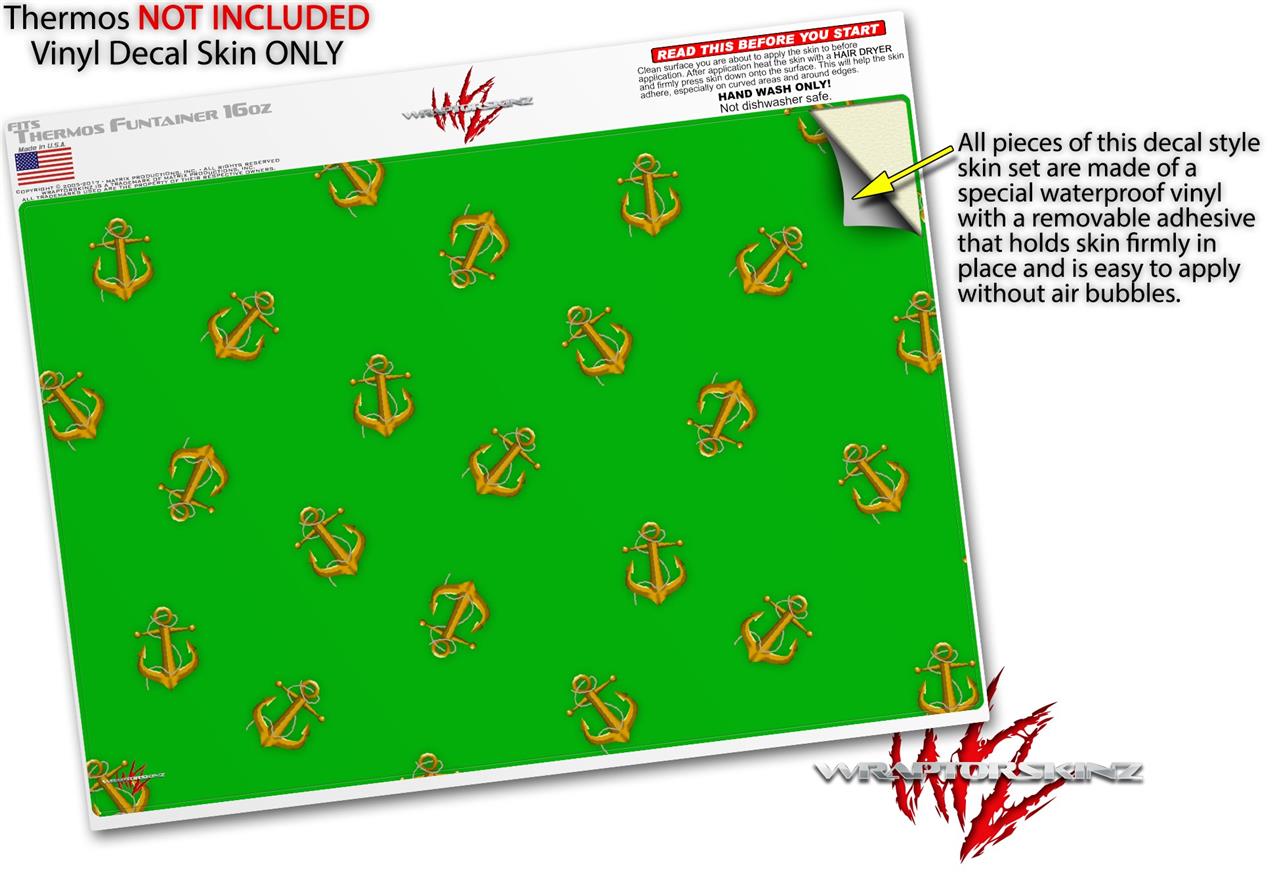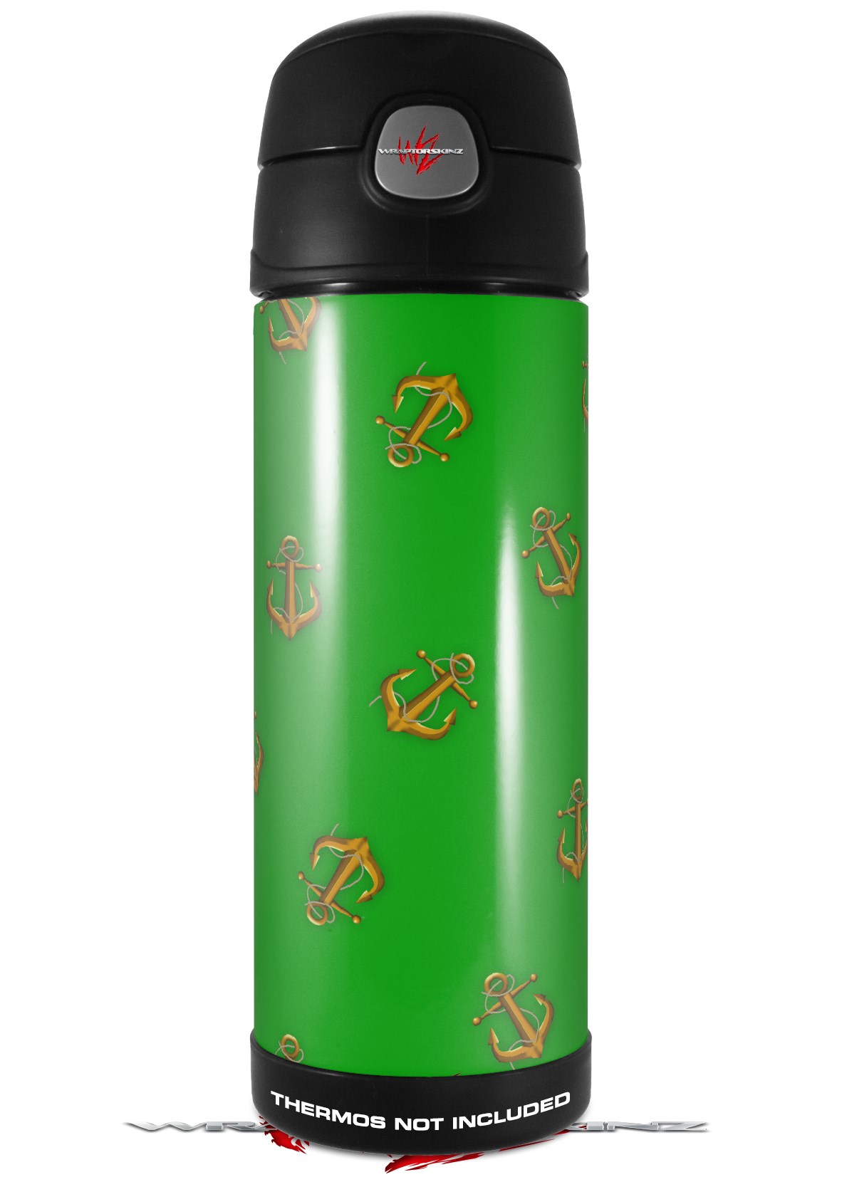 Skin Decal Wrap for Thermos Funtainer 16oz Bottle Anchors Away Green (BOTTLE NOT INCLUDED) by WraptorSkinz