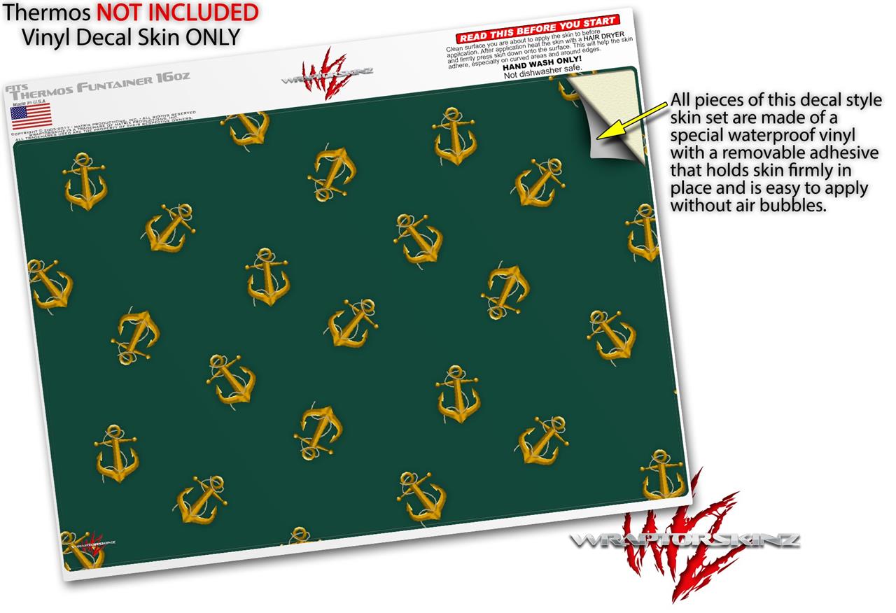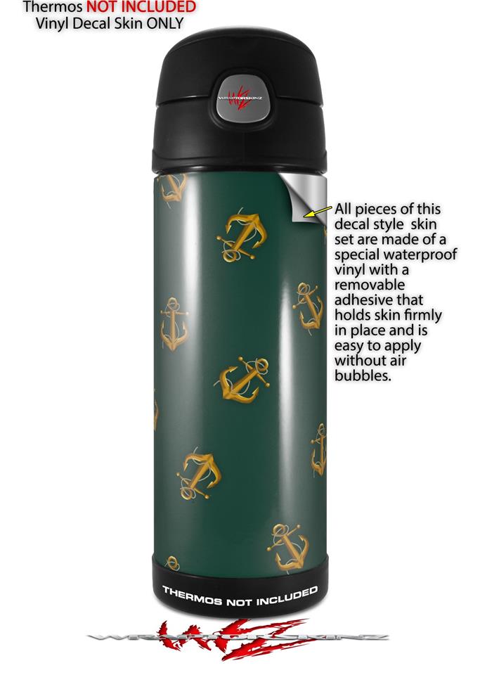 Skin Decal Wrap for Thermos Funtainer 16oz Bottle Anchors Away Hunter Green (BOTTLE NOT INCLUDED) by WraptorSkinz
