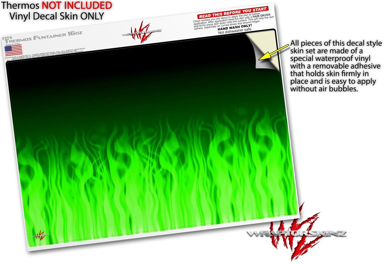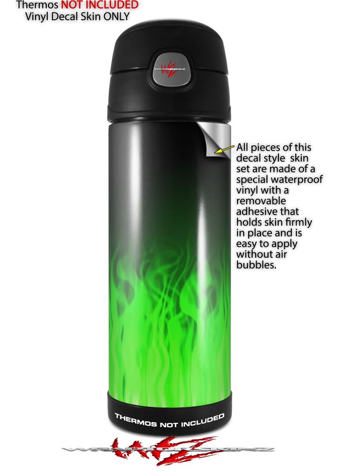 Skin Decal Wrap for Thermos Funtainer 16oz Bottle Fire Green (BOTTLE NOT INCLUDED) by WraptorSkinz