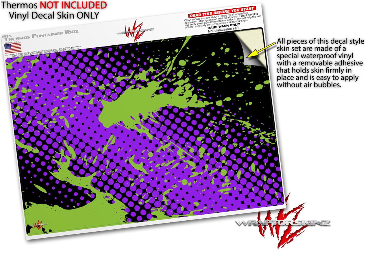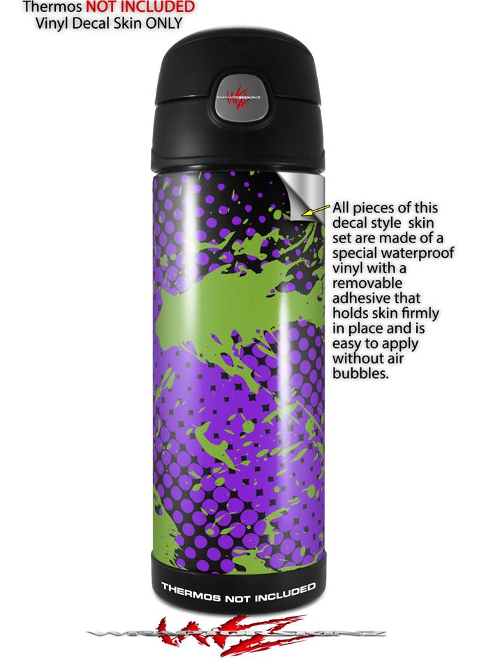 Skin Decal Wrap for Thermos Funtainer 16oz Bottle Halftone Splatter Green Purple (BOTTLE NOT INCLUDED) by WraptorSkinz