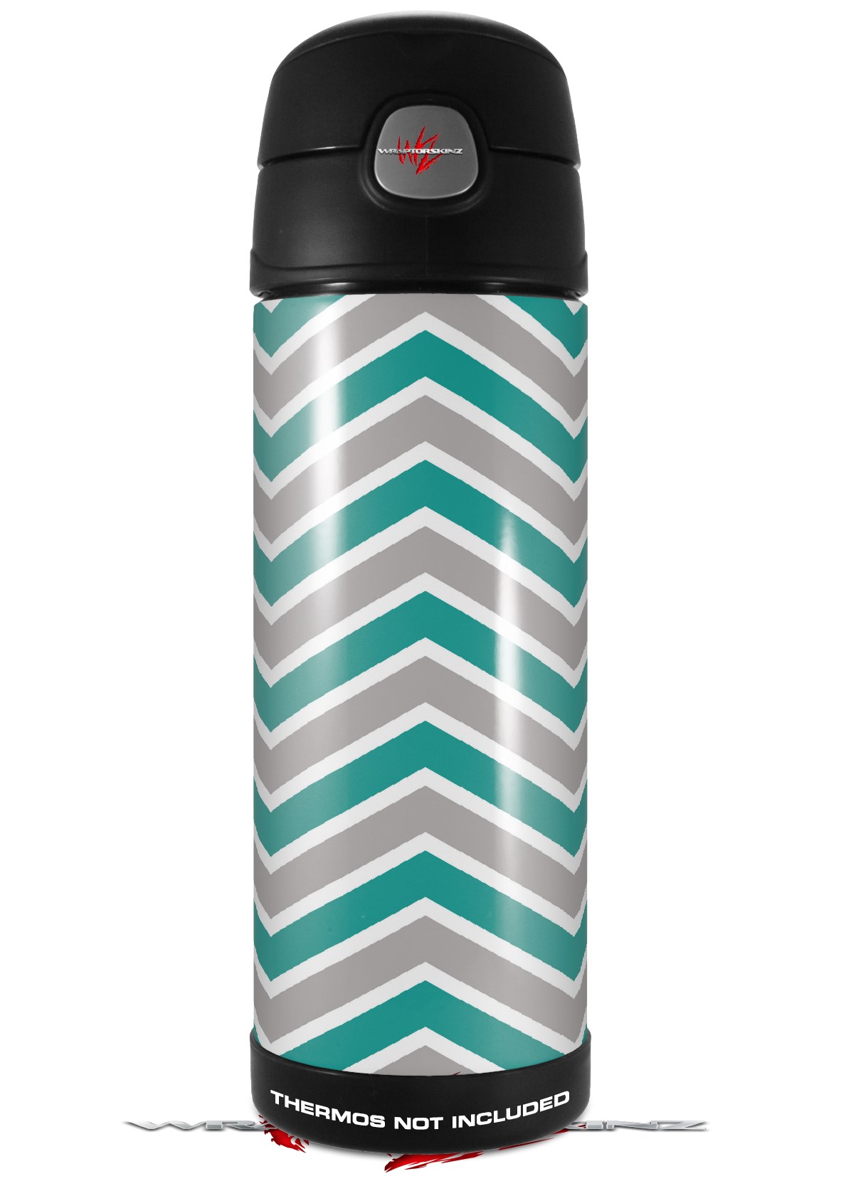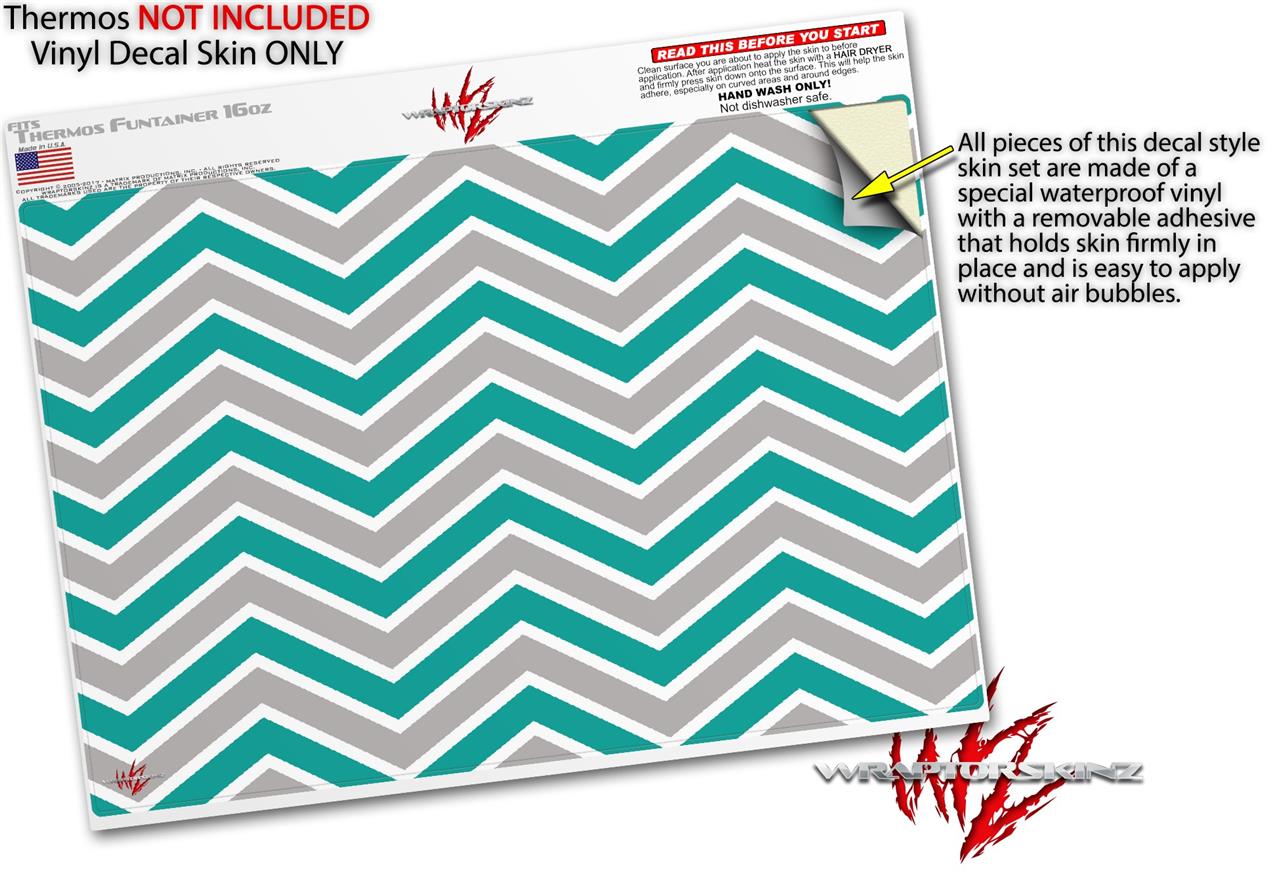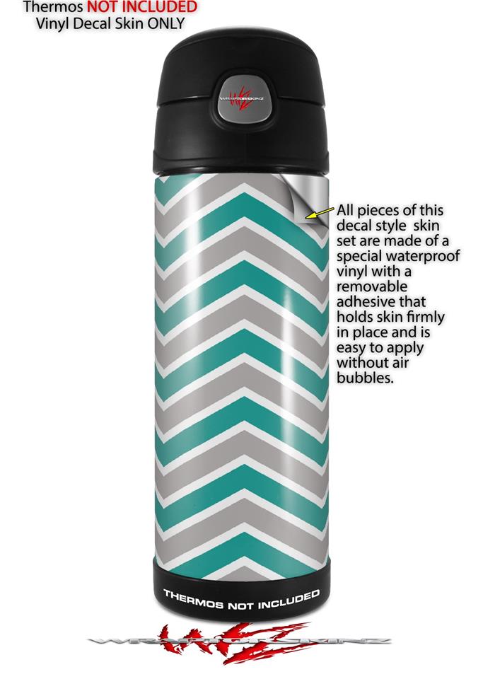 Skin Decal Wrap for Thermos Funtainer 16oz Bottle Zig Zag Teal and Gray (BOTTLE NOT INCLUDED) by WraptorSkinz
