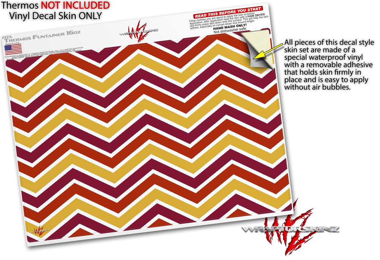 Skin Decal Wrap for Thermos Funtainer 16oz Bottle Zig Zag Yellow Burgundy Orange (BOTTLE NOT INCLUDED) by WraptorSkinz
