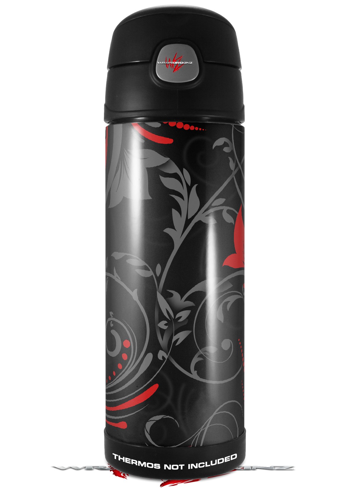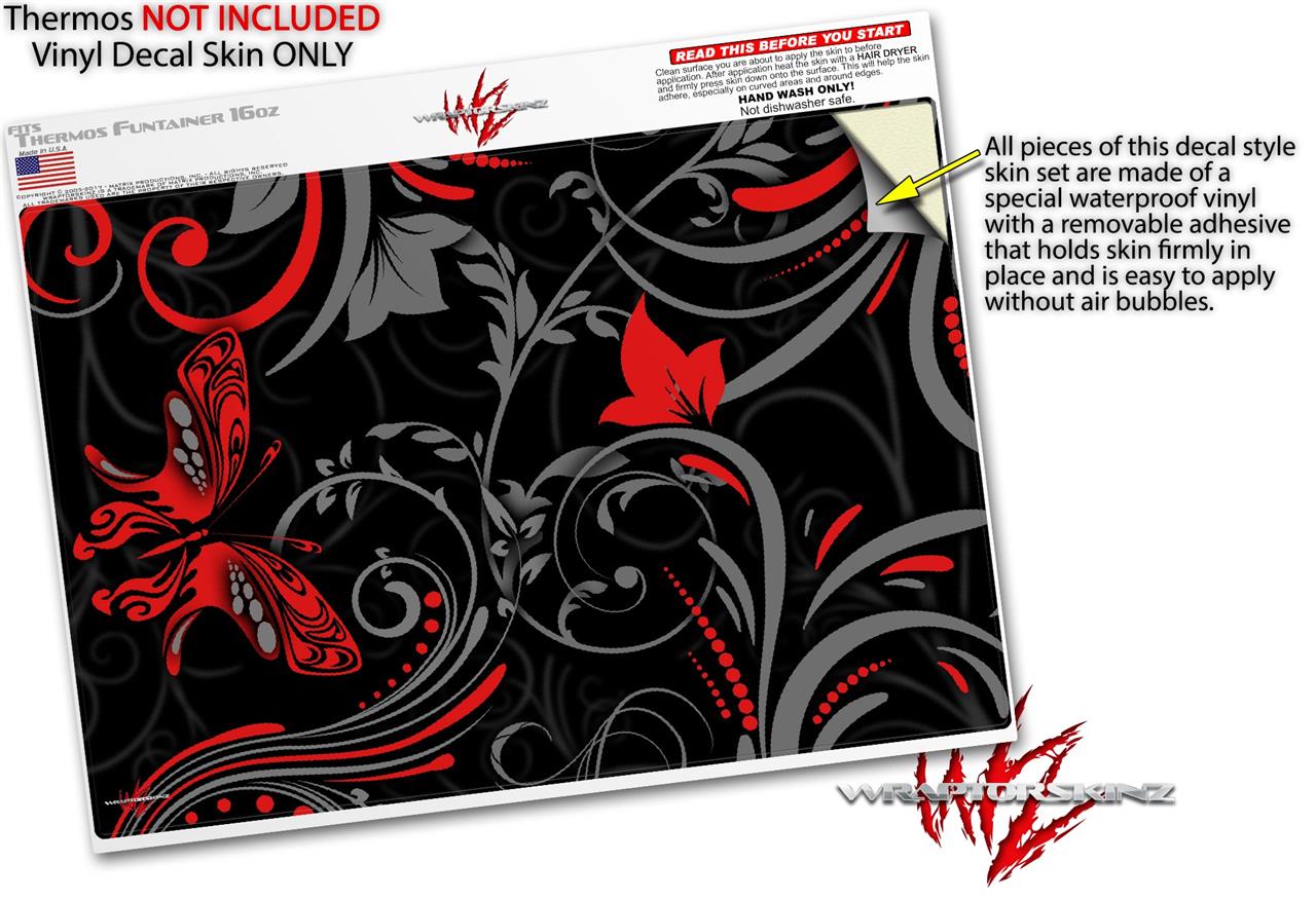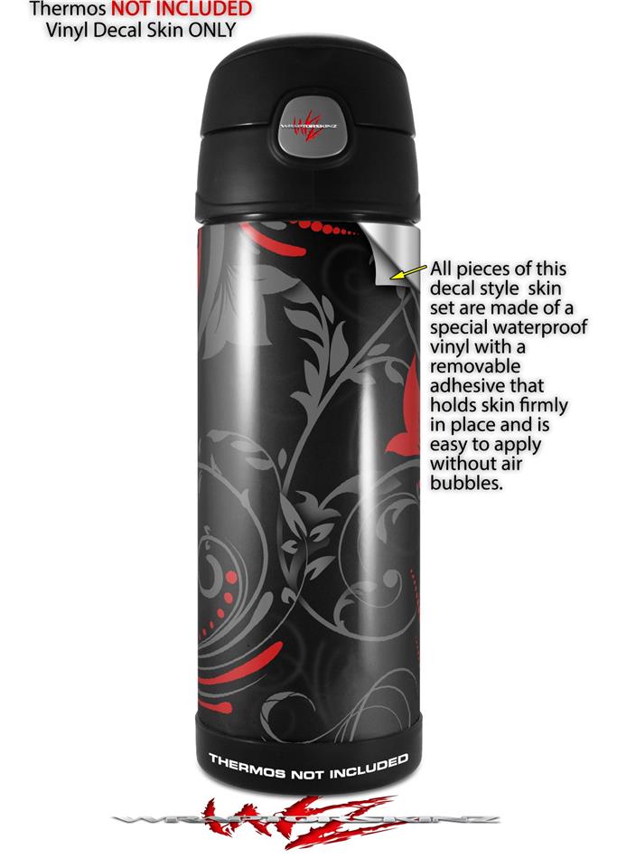 Skin Decal Wrap for Thermos Funtainer 16oz Bottle Twisted Garden Gray and Red (BOTTLE NOT INCLUDED) by WraptorSkinz