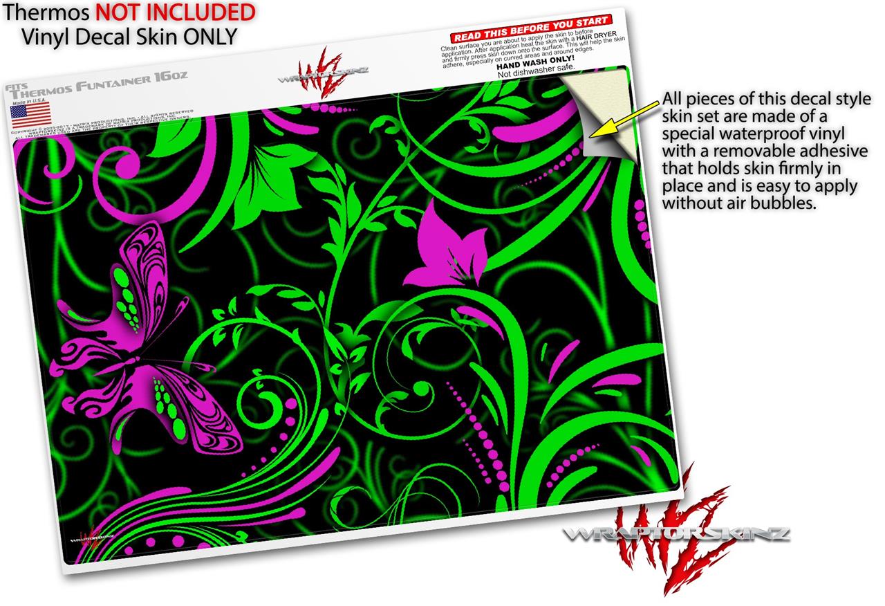 Skin Decal Wrap for Thermos Funtainer 16oz Bottle Twisted Garden Green and Hot Pink (BOTTLE NOT INCLUDED) by WraptorSkinz