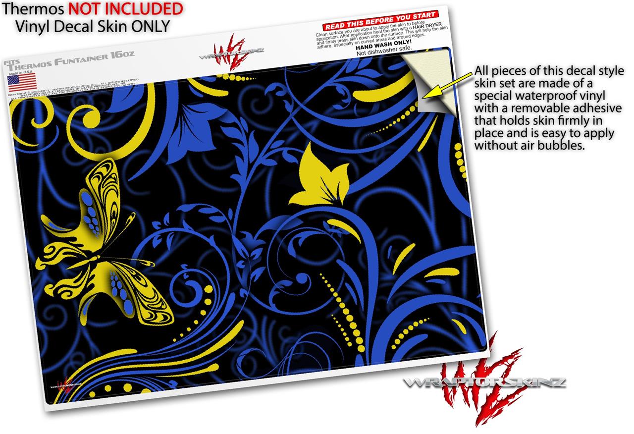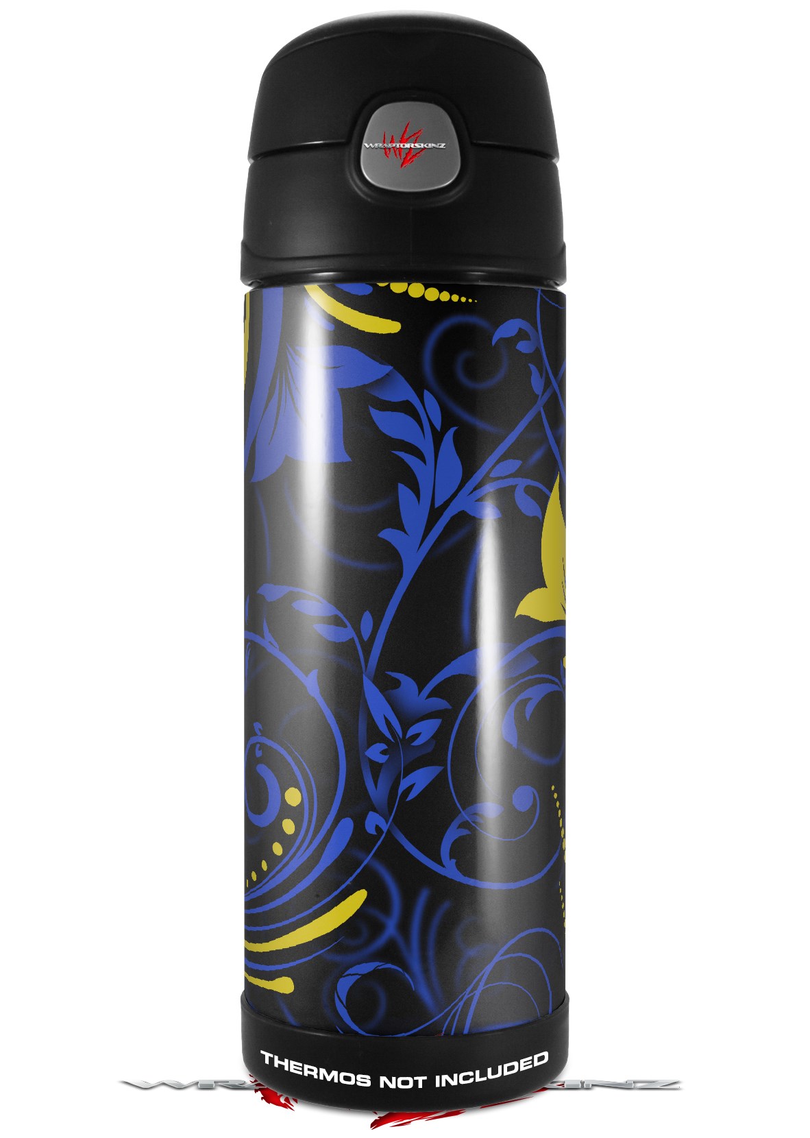 Skin Decal Wrap for Thermos Funtainer 16oz Bottle Twisted Garden Blue and Yellow (BOTTLE NOT INCLUDED) by WraptorSkinz