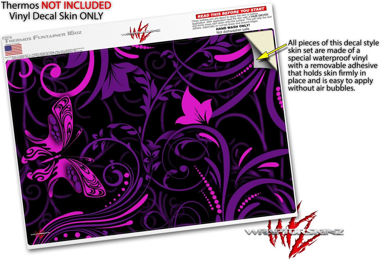Skin Decal Wrap for Thermos Funtainer 16oz Bottle Twisted Garden Purple and Hot Pink (BOTTLE NOT INCLUDED) by WraptorSkinz