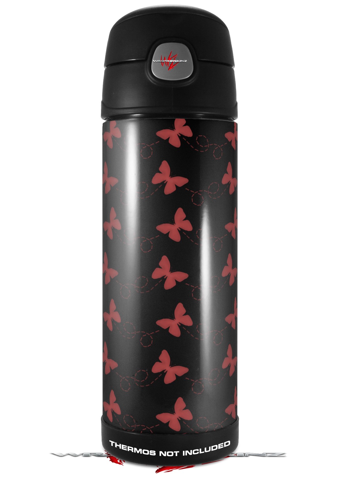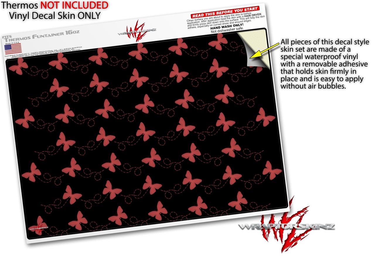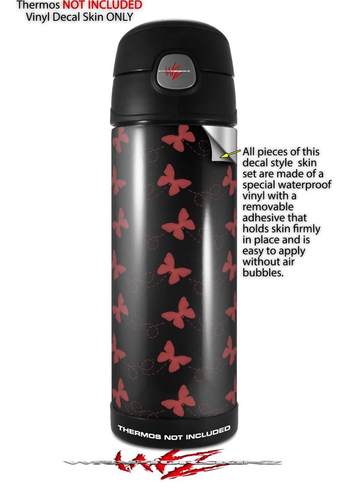 Skin Decal Wrap for Thermos Funtainer 16oz Bottle Pastel Butterflies Red on Black (BOTTLE NOT INCLUDED) by WraptorSkinz
