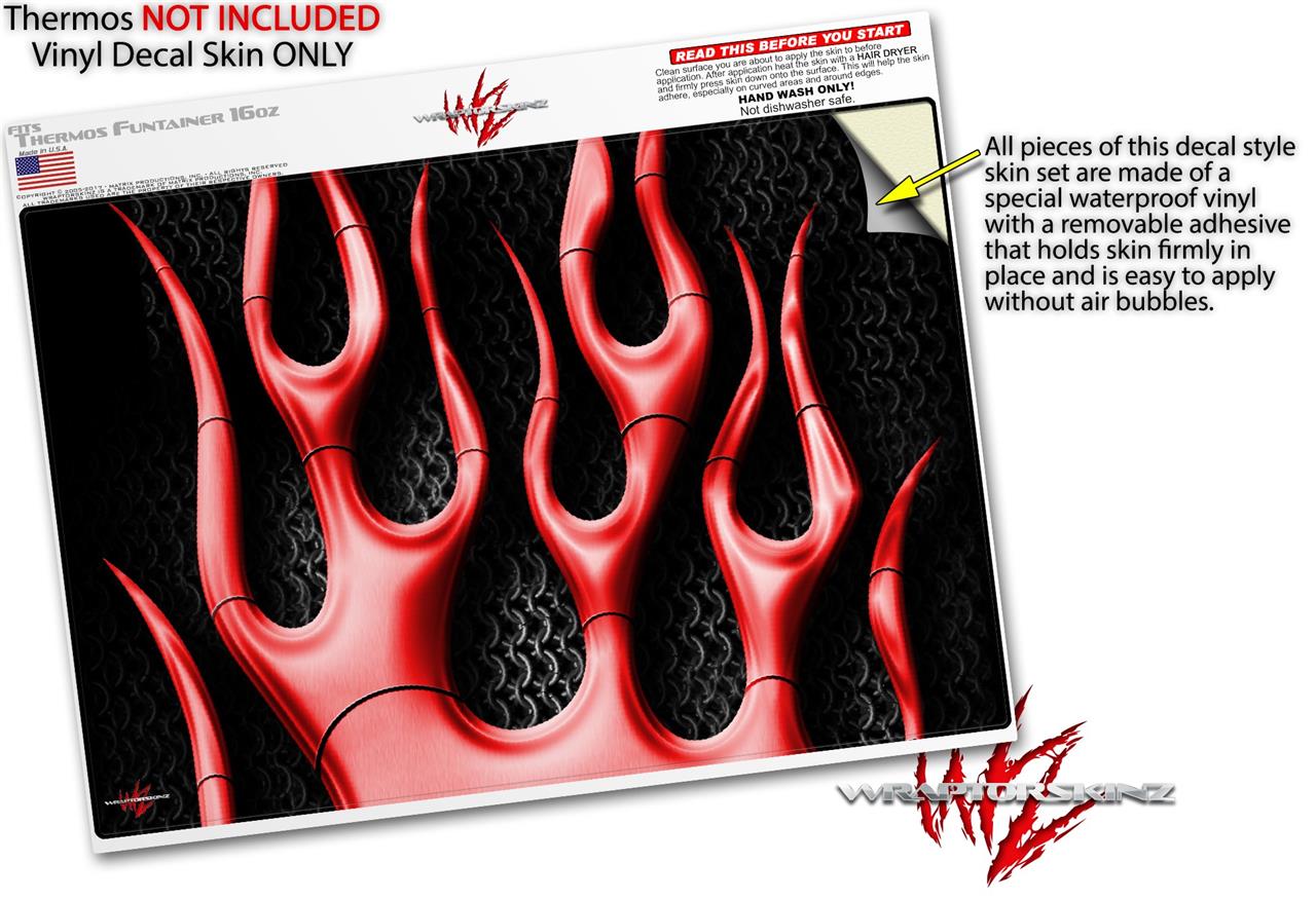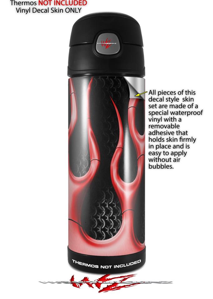 Skin Decal Wrap for Thermos Funtainer 16oz Bottle Metal Flames Red (BOTTLE NOT INCLUDED) by WraptorSkinz