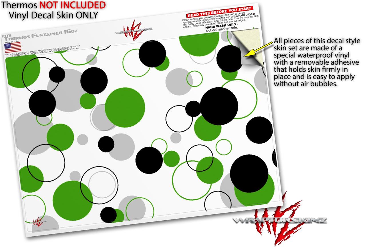 Skin Decal Wrap for Thermos Funtainer 16oz Bottle Lots of Dots Green on White (BOTTLE NOT INCLUDED) by WraptorSkinz