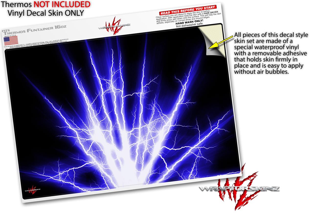 Skin Decal Wrap for Thermos Funtainer 16oz Bottle Lightning Blue (BOTTLE NOT INCLUDED) by WraptorSkinz