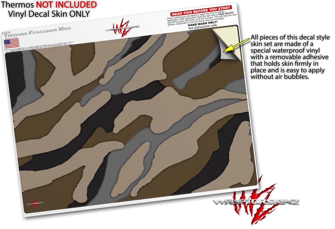 Skin Decal Wrap for Thermos Funtainer 16oz Bottle Camouflage Brown (BOTTLE NOT INCLUDED) by WraptorSkinz