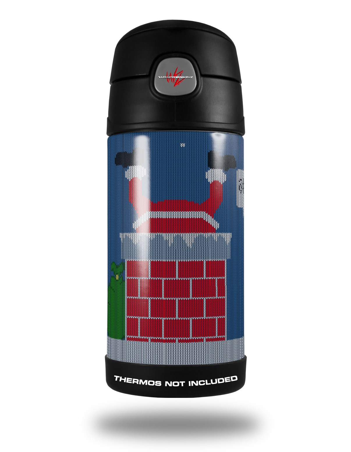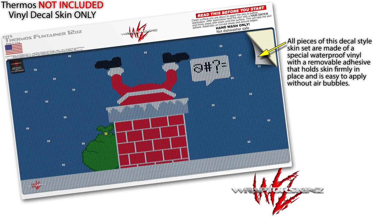 Skin Decal Wrap for Thermos Funtainer 12oz Bottle Ugly Holiday Christmas Sweater - Incoming Santa (BOTTLE NOT INCLUDED)