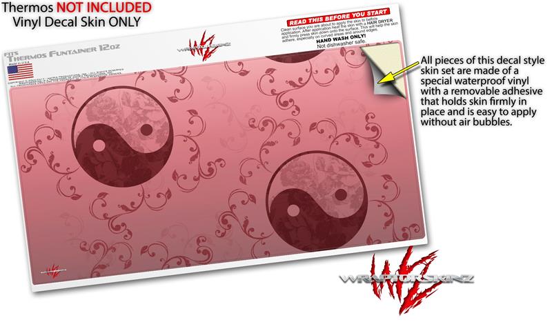 Skin Decal Wrap for Thermos Funtainer 12oz Bottle Feminine Yin Yang Red (BOTTLE NOT INCLUDED)