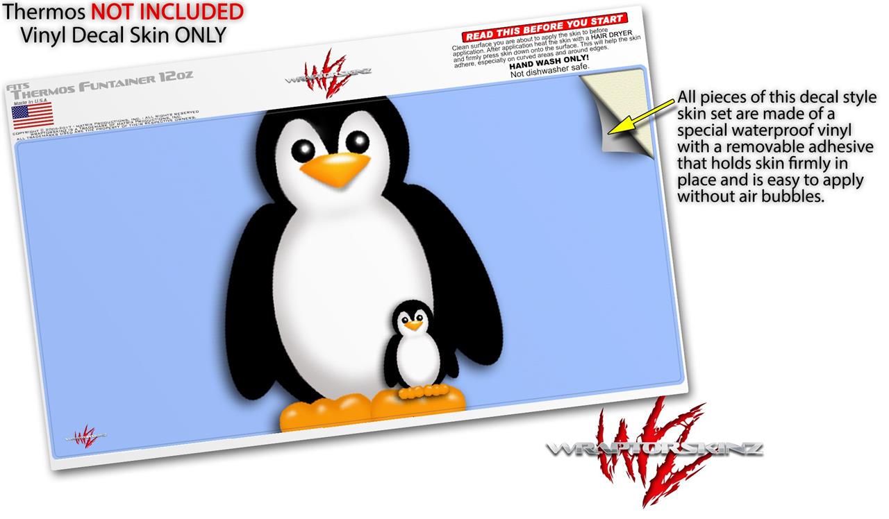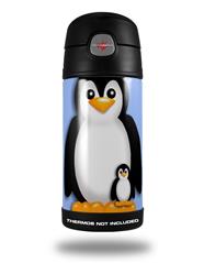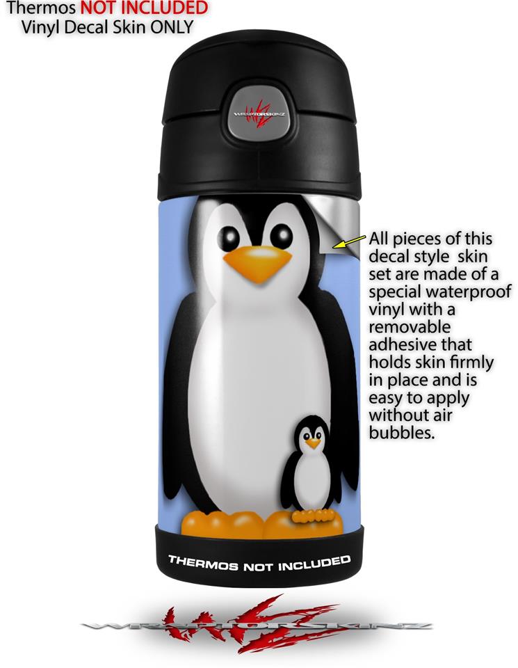 Skin Decal Wrap for Thermos Funtainer 12oz Bottle Penguins on Blue (BOTTLE NOT INCLUDED)