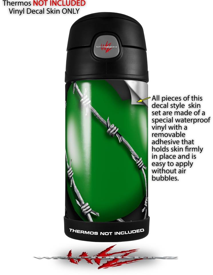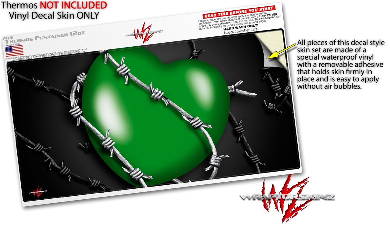 Skin Decal Wrap for Thermos Funtainer 12oz Bottle Barbwire Heart Green (BOTTLE NOT INCLUDED)