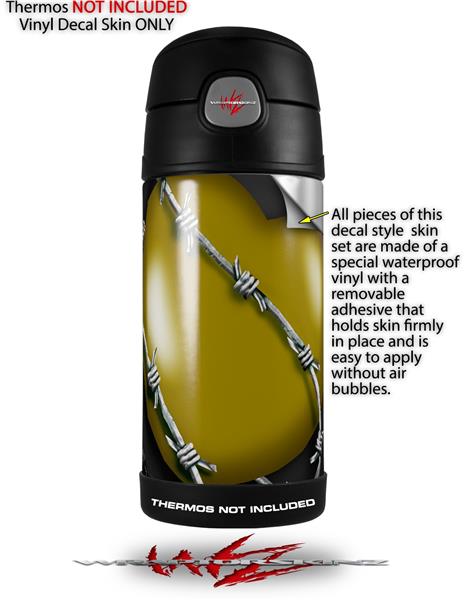 Skin Decal Wrap for Thermos Funtainer 12oz Bottle Barbwire Heart Yellow (BOTTLE NOT INCLUDED)