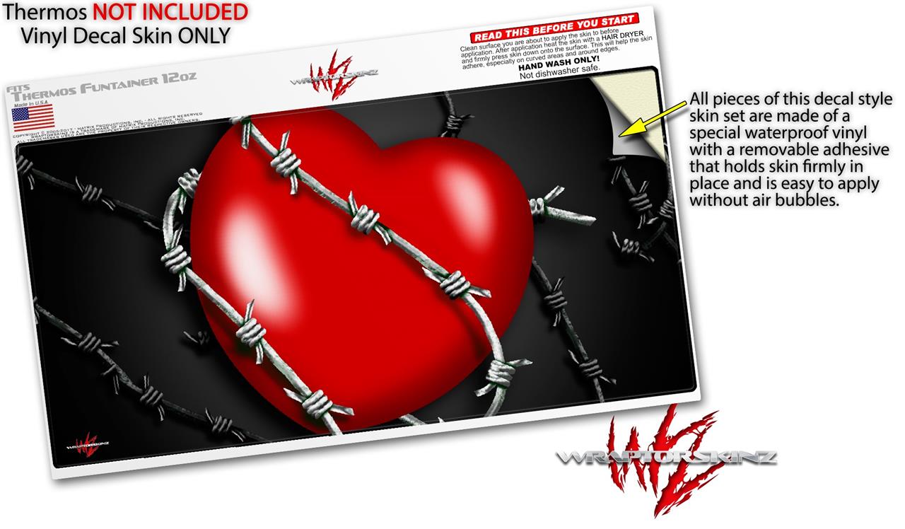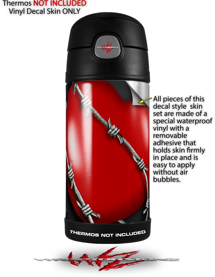 Skin Decal Wrap for Thermos Funtainer 12oz Bottle Barbwire Heart Red (BOTTLE NOT INCLUDED)