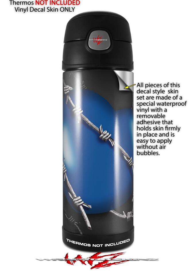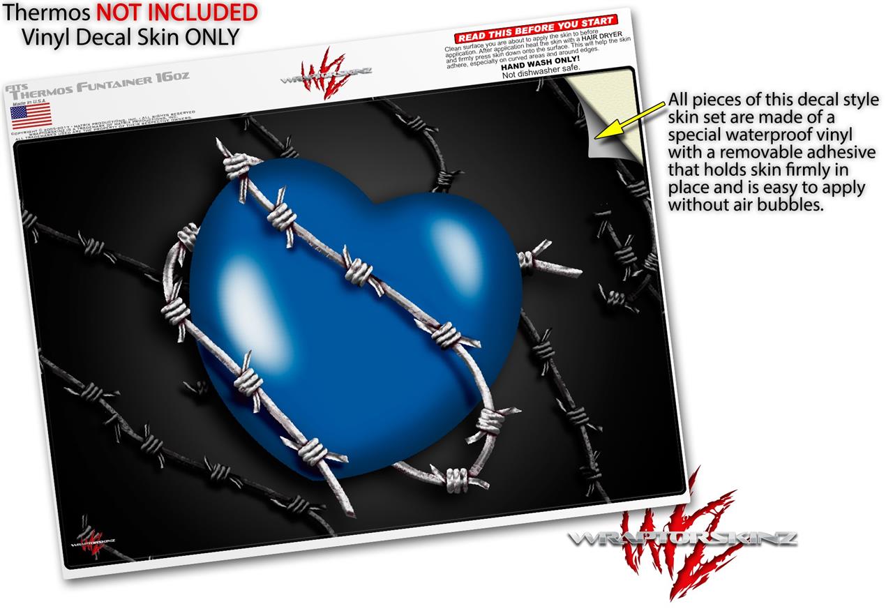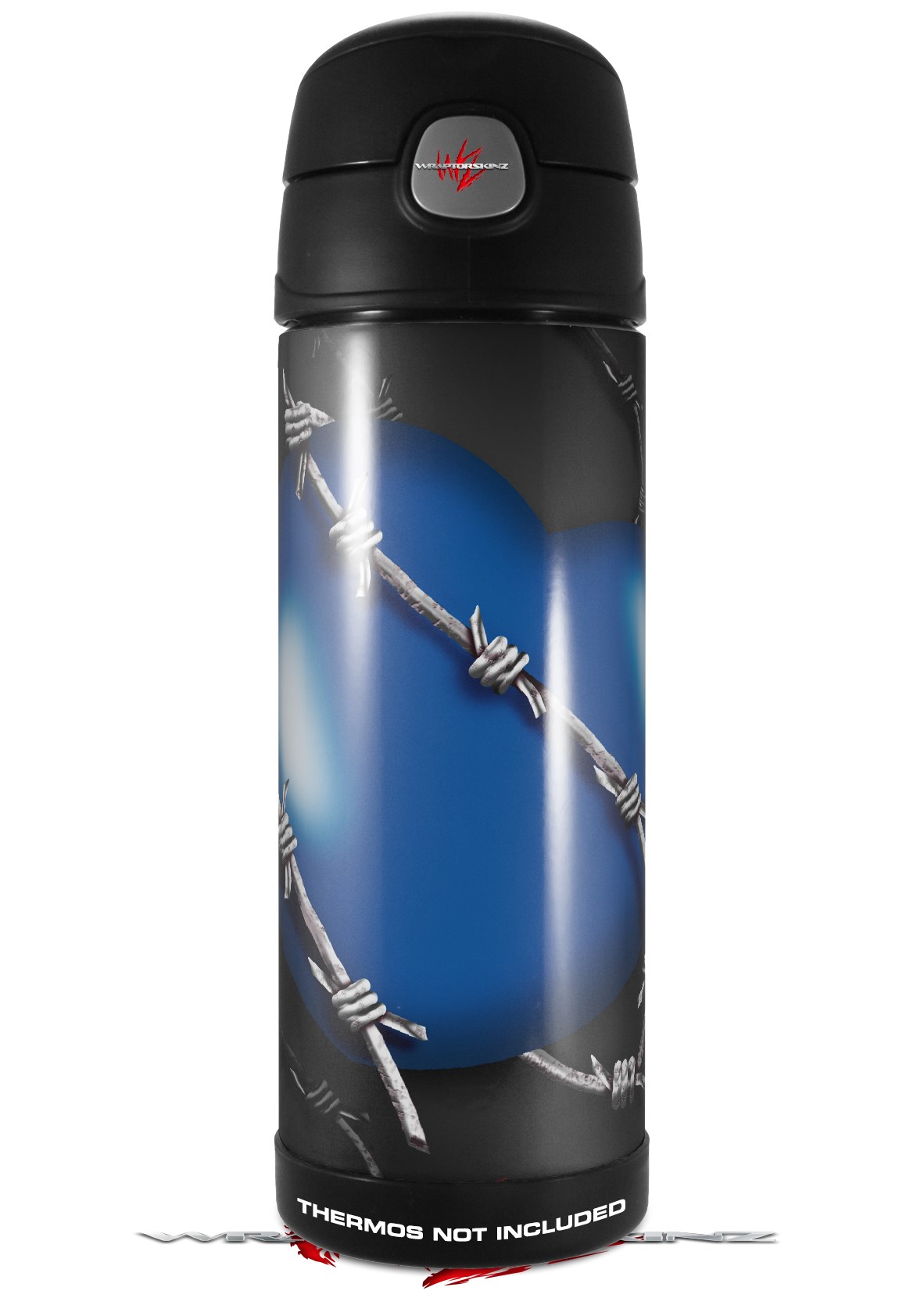 Skin Decal Wrap for Thermos Funtainer 16oz Bottle Barbwire Heart Blue (BOTTLE NOT INCLUDED) by WraptorSkinz