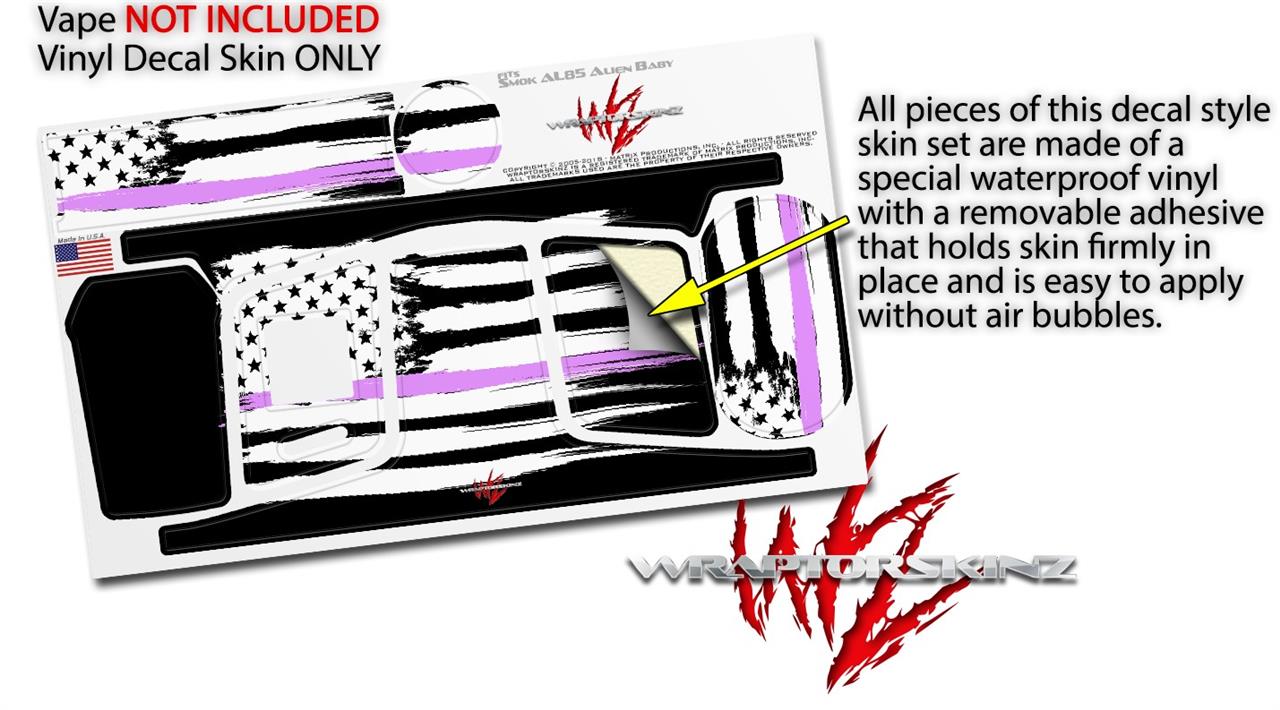 Skin Decal Wraps for Smok AL85 Alien Baby Brushed USA American Flag Pink Line VAPE NOT INCLUDED